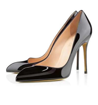 The So Kate iconic pump with timeless elegance brilliantly combines discretion and sophistication. Its all black patent calfskin features a sculpted upper that extends its lines to the iconic bold cut. It sits easy atop a slender 120 mm heel to give you confidence, underlining Maison Christian Louboutin know-how.