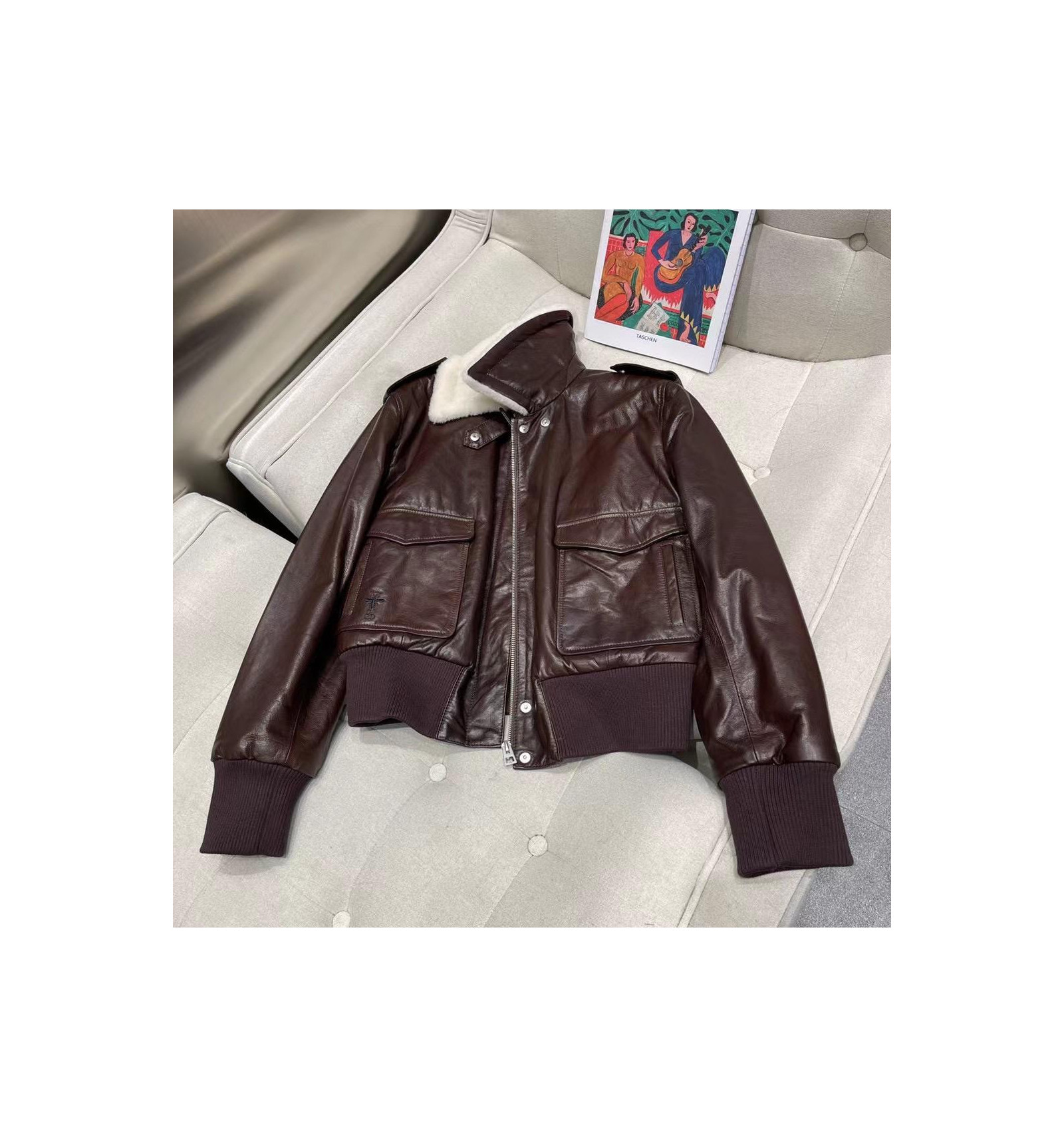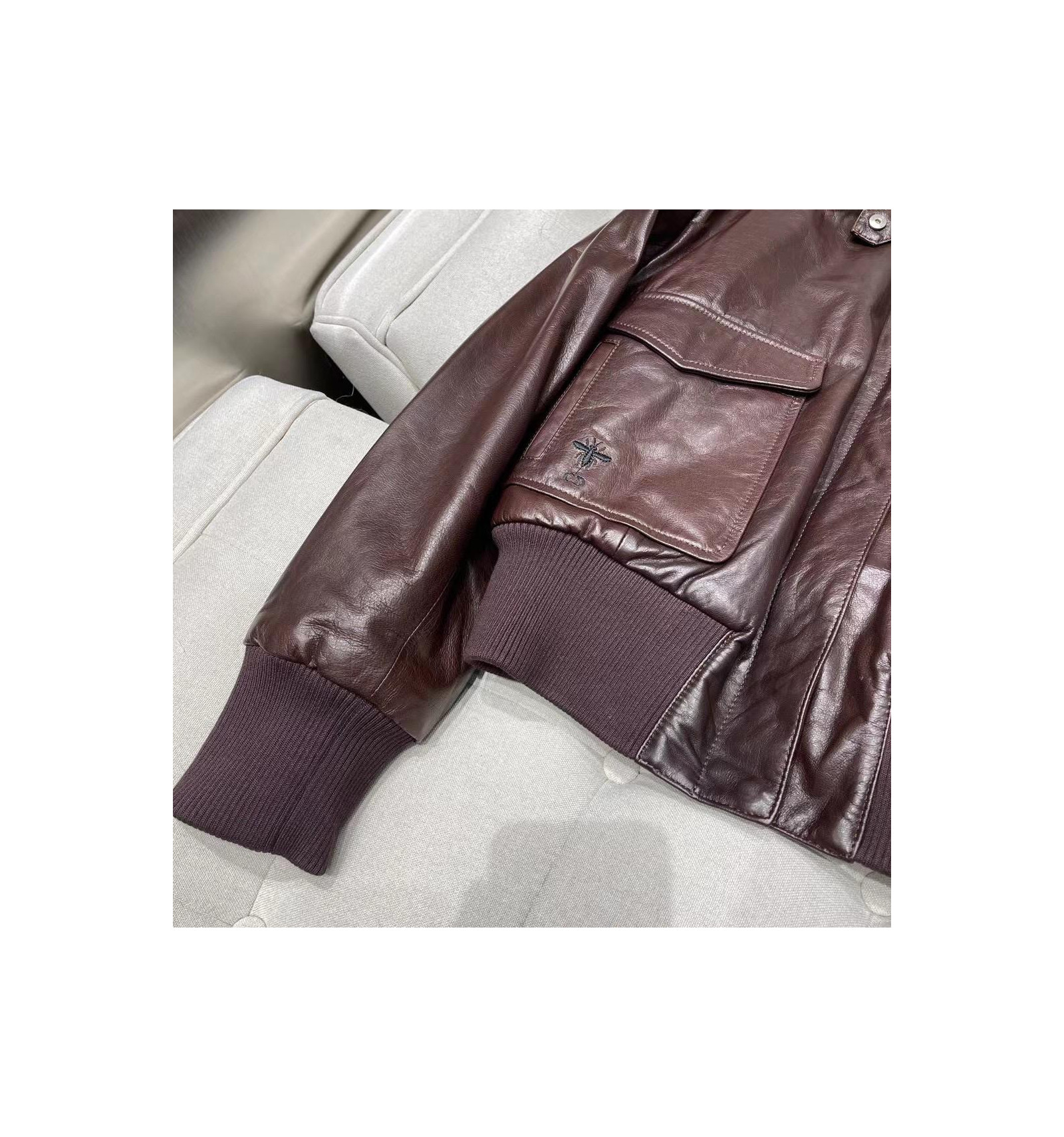 B -26 Aviator Flight Jacket is prepared from top quality genuine leather. Soft shearling lining gives you more relaxation. The frontal zipper closure is the simple wearing option. Fur shirt collar has made it very special for any occasion. B-26 Bomber Jacket has long sleeves. Two side waist pockets are present in the attire. Rib-knit waistline makes you safe from cold weather. The sleeves are ending on rib-knit cuffs.