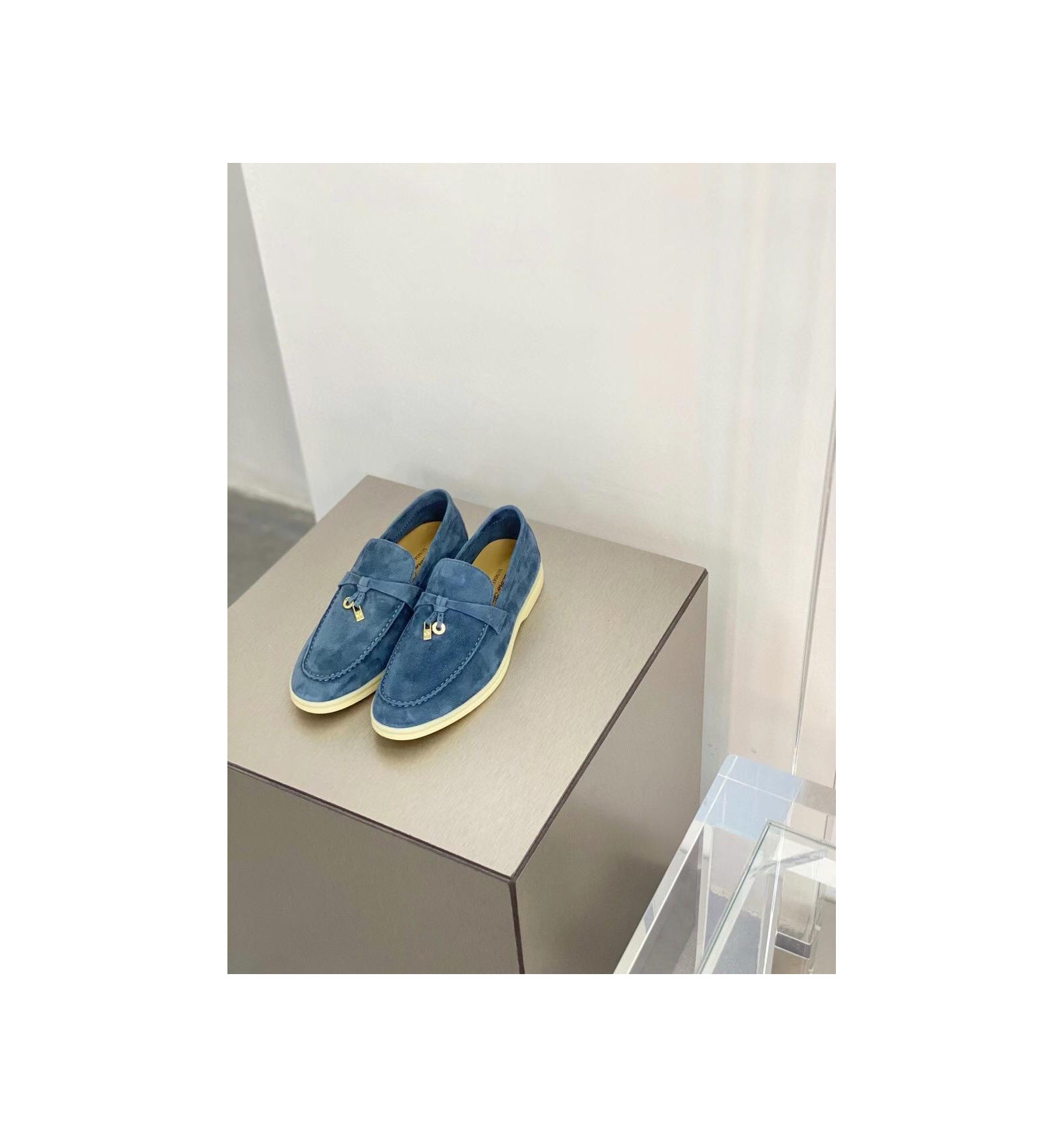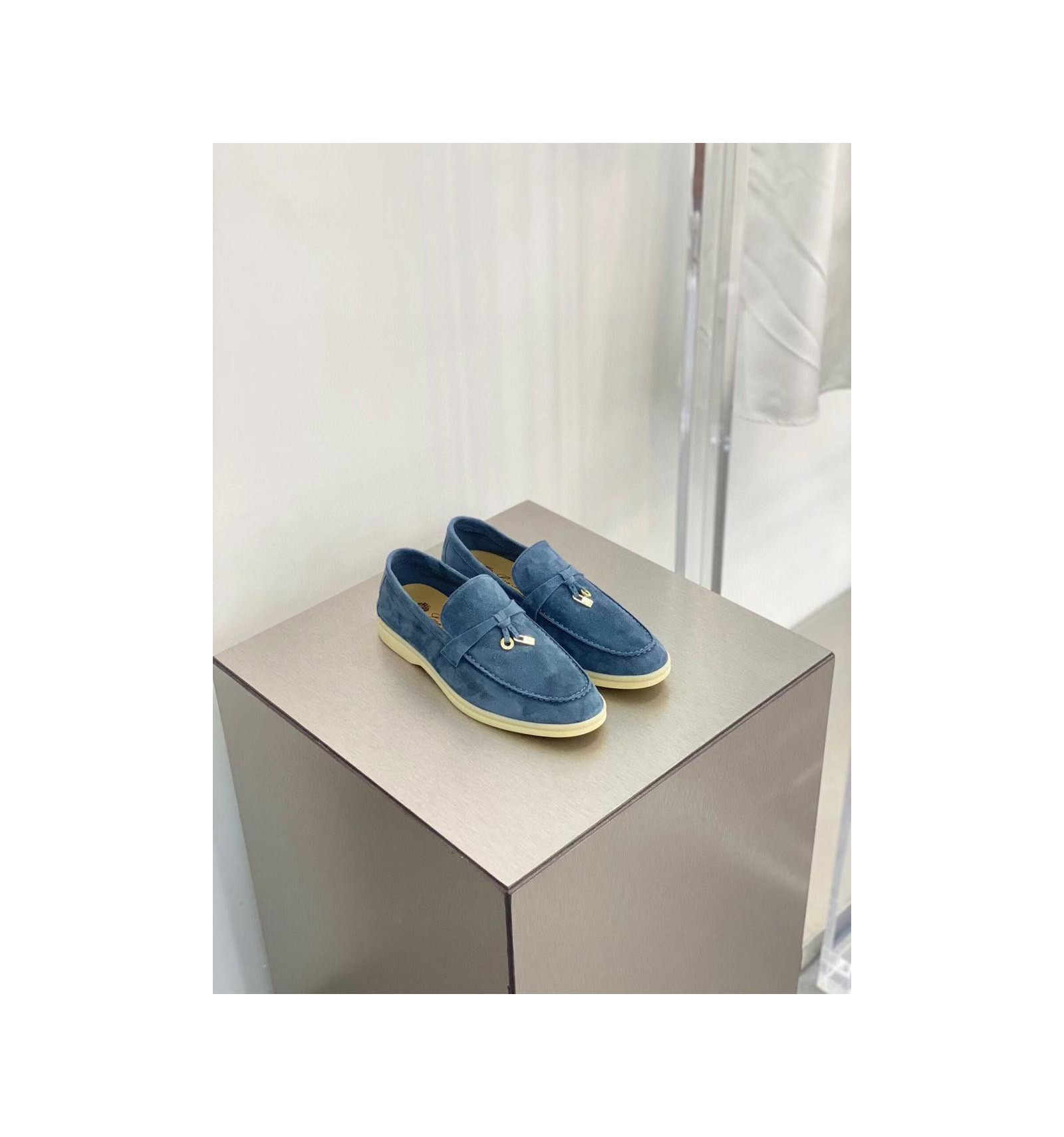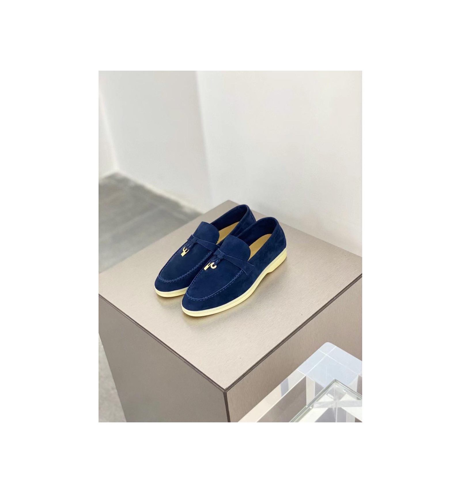mocassins casual en suède non doublé, souples et très confortables. Les semelles en latex clair sont une caractéristique sport, commune à toutes les chaussures Loro Piana