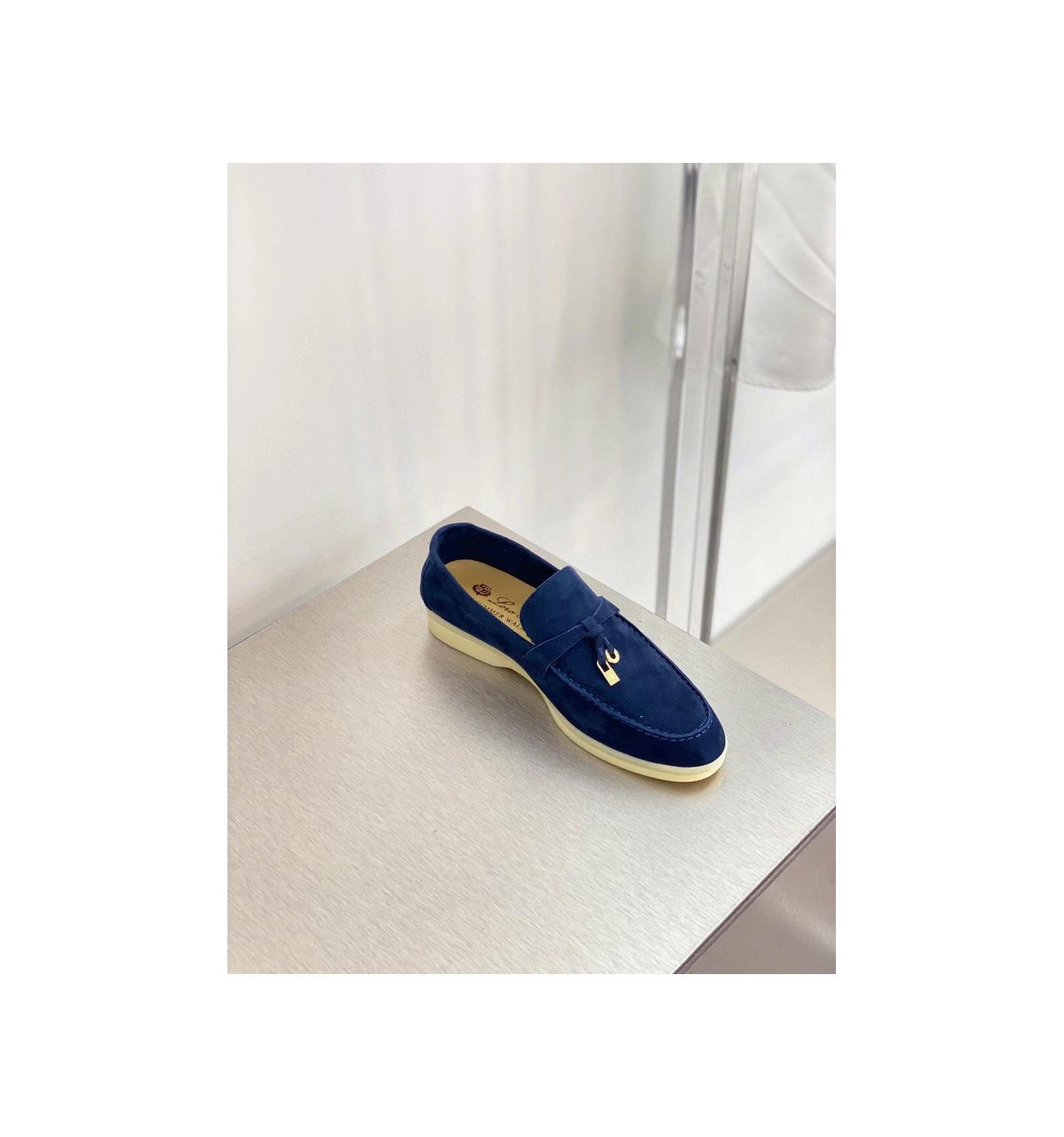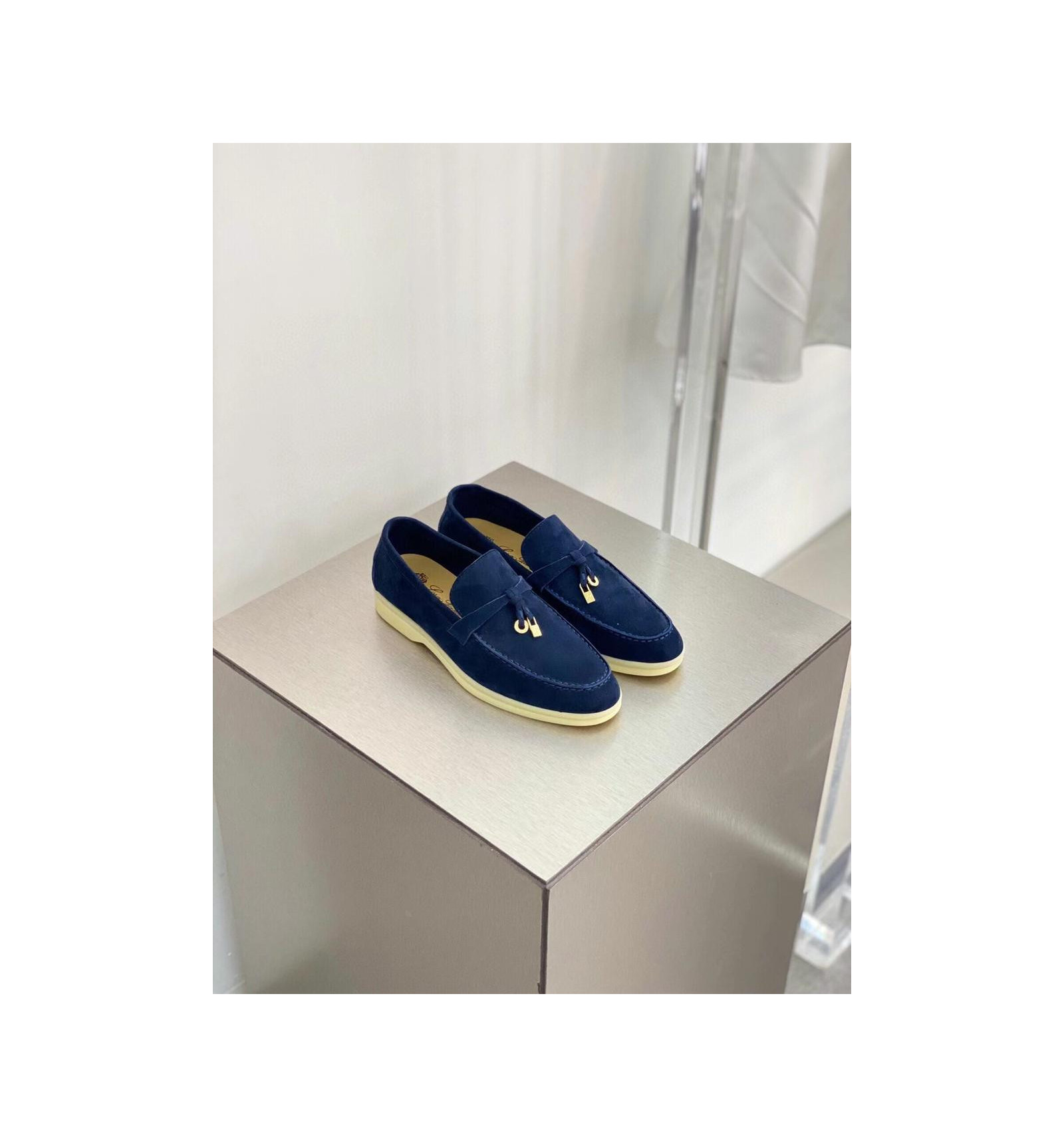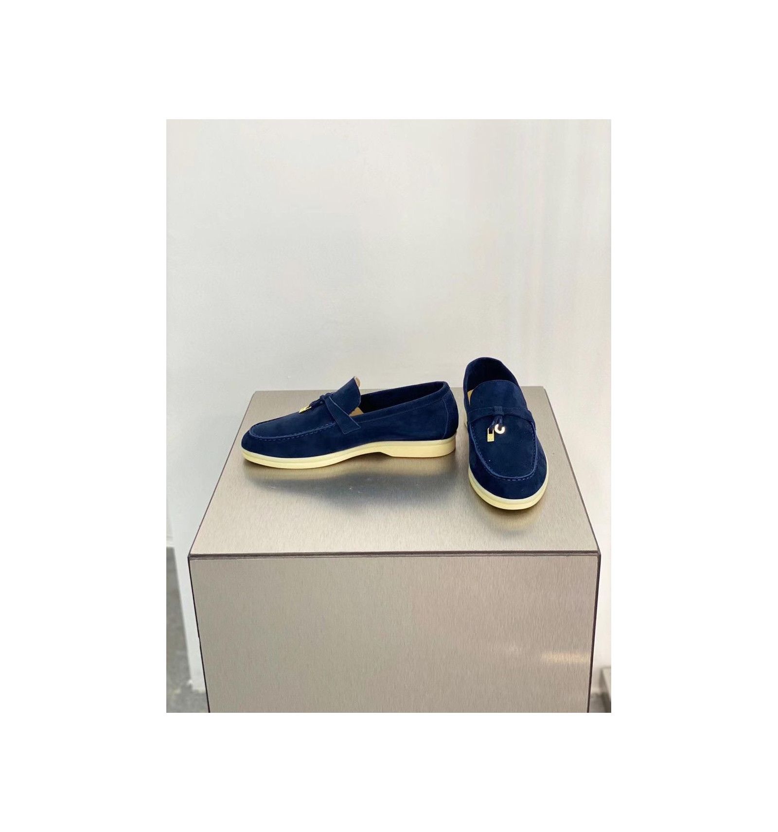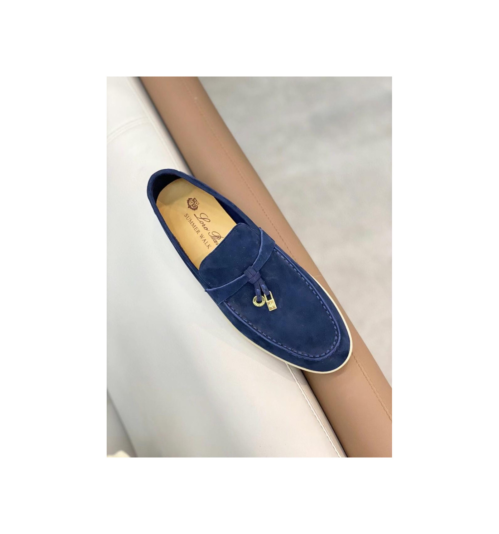 mocassins casual en suède non doublé, souples et très confortables. Les semelles en latex clair sont une caractéristique sport, commune à toutes les chaussures Loro Piana