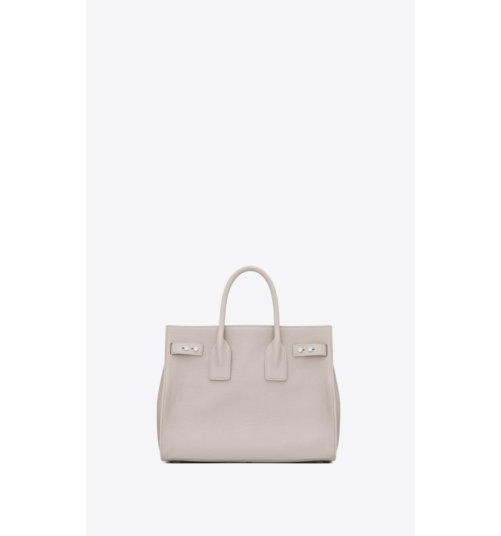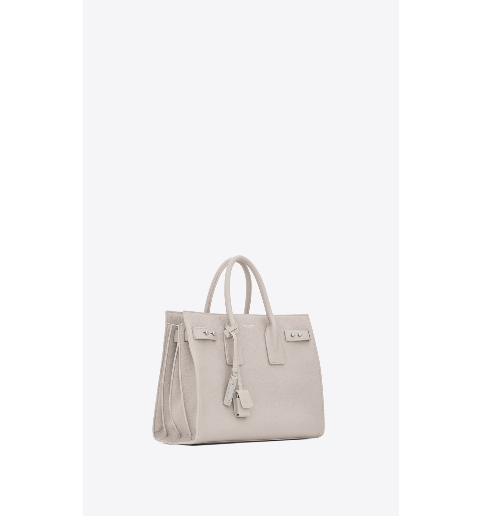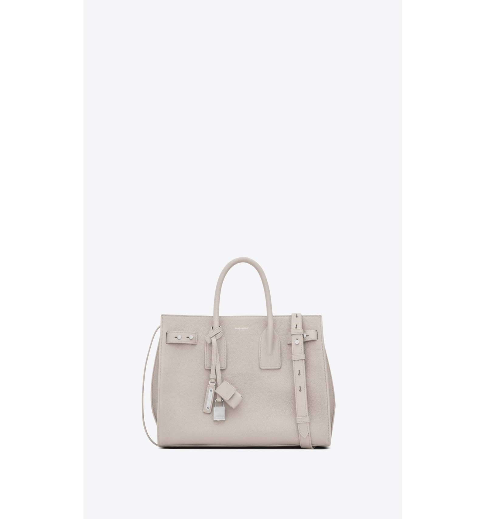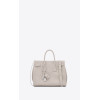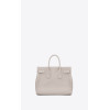 SAC SAINT LAURENT SIGNATURE À POIGNÉES TUBULAIRES, ORNÉ DE SOUFFLETS LATÉRAUX ET D'UNE SANGLE DE COMPRESSION MUNIE DE PATTES, D'UNE INSCRIPTION SAINT LAURENT EMBOSSÉE ET D'UNE BANDOULIÈRE AMOVIBLE.