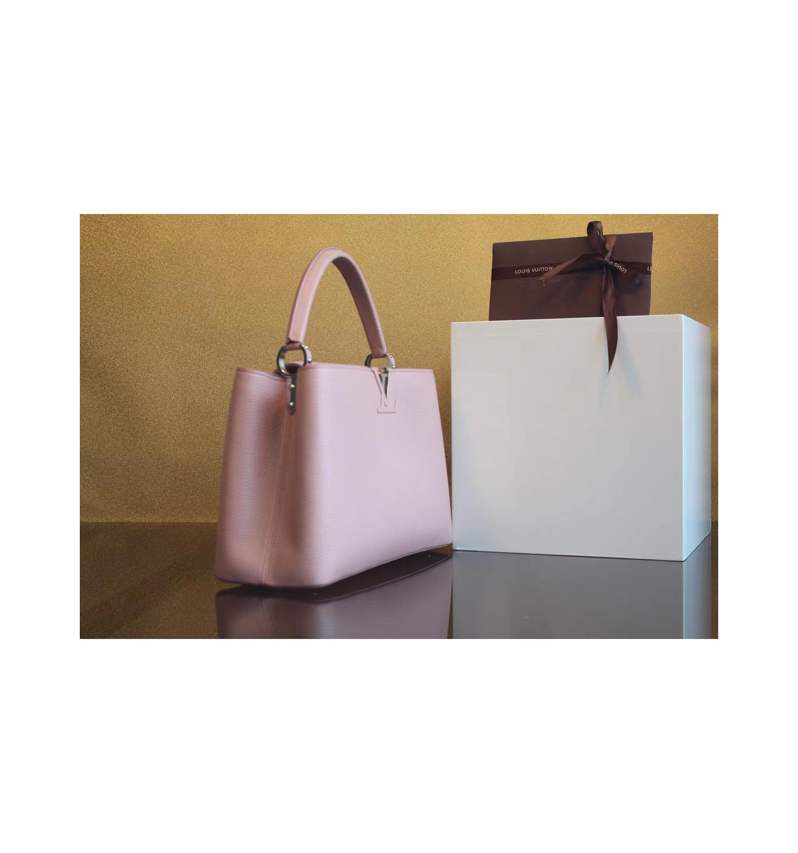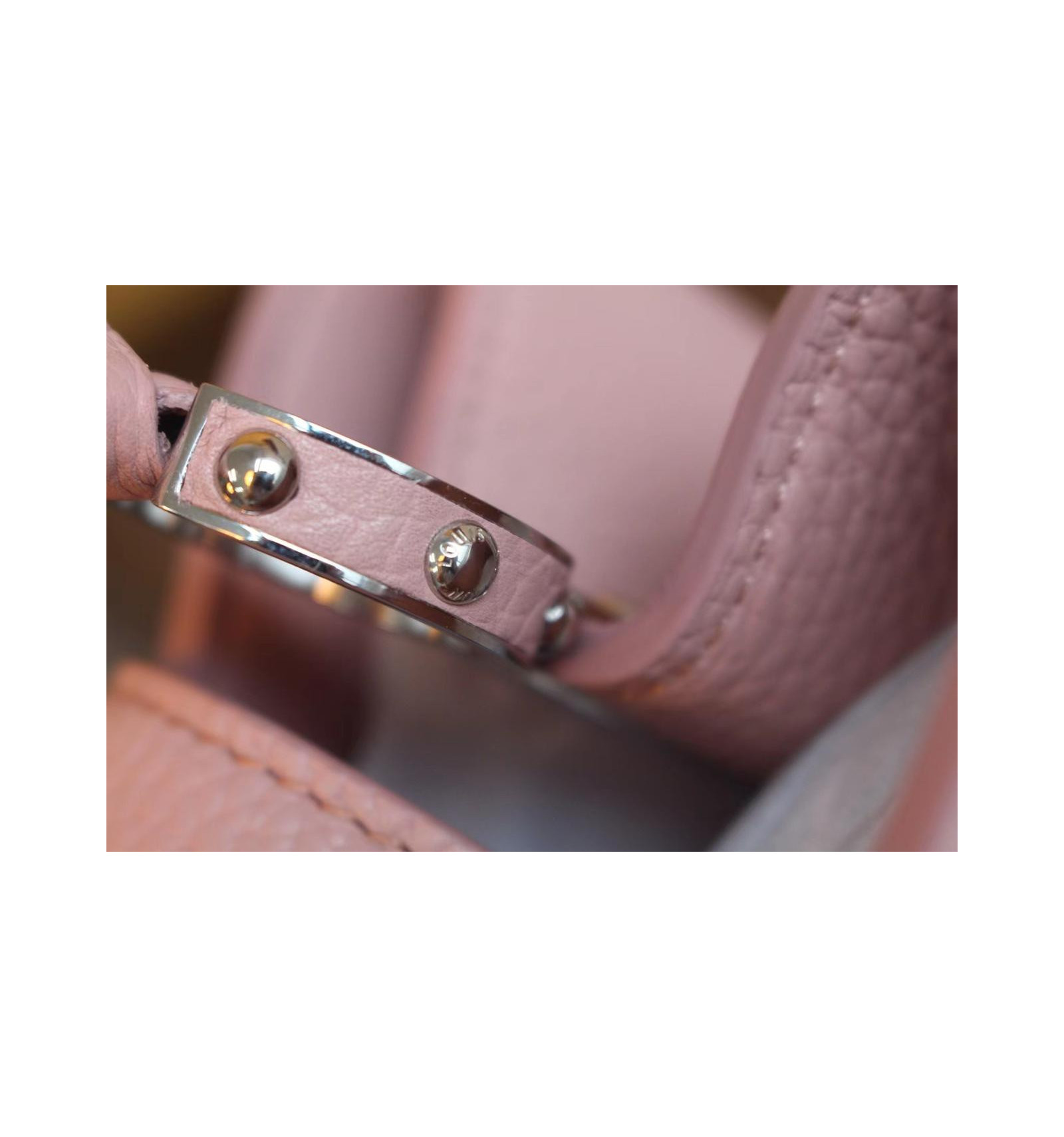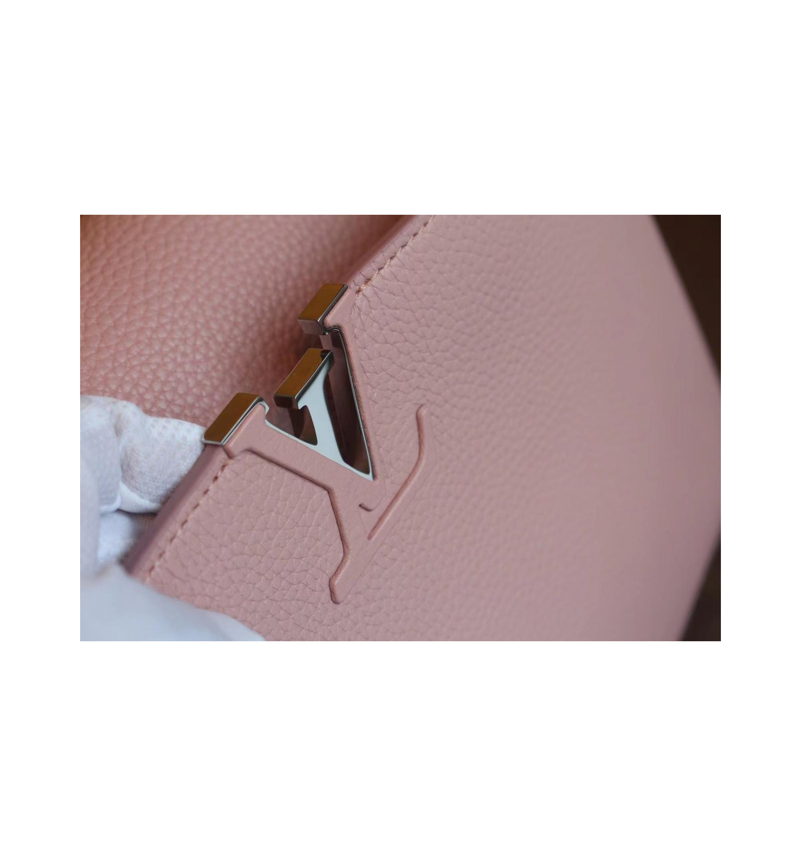 Fashioned from full-grain Taurillon leather, the now-classic Capucines BB handbag displays a host of House signatures: leather-wrapped LV Initials, jewel-like handle mounts inspired by historic trunks, and a distinctive flap with a Monogram Flower motif. Timelessly elegant, this charming model can be carried by hand or worn cross-body on its detachable strap. First launched in 2013, the Capucines is named for the Parisian street where Louis Vuitton first opened shop, in 1854.