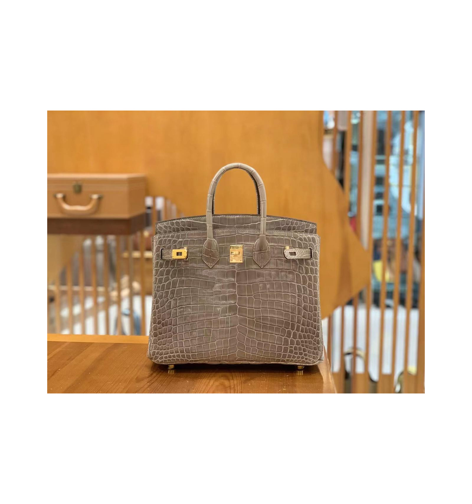 It can take up to 48 hours for a skilled artisan to craft just one Birkin Bag, as attention is paid to the highest quality finish. This vintage Hermès Birkin 35 Retourne was handcrafted from delicate Alligator Mississippi leather in Marron, topped with gold-plated hardware. The versatile, tan shade combined with the special, exotic skin means it’s a sought-after wardrobe investment - you'll cherish and carry it for years to come. It was crafted in 1995 (“Y” stamp) and comes in good pre-loved condition. The outside leather shows some watermarks and there are signs of wear on the corners.