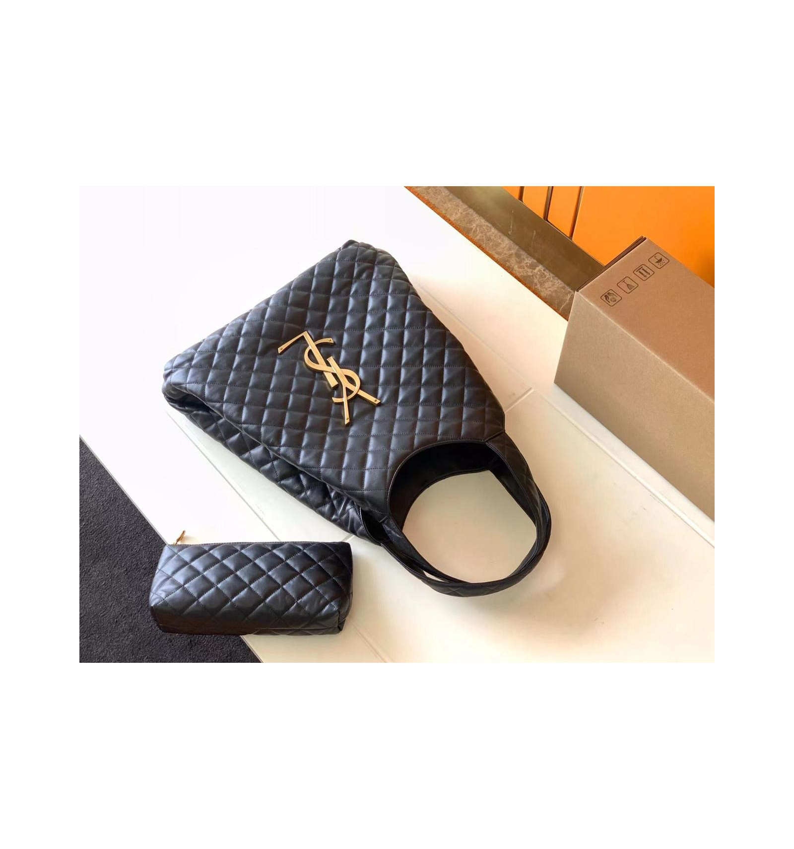 MAXI SHOPPING BAG WITH TOGGLE CLOSURE, FEATURING A REMOVABLE ZIPPED POUCH, DECORATED WITH CARRÉ-QUILTED OVERSTITCHING AND THE NEW SCULPTED JEWEL YSL ICONIC SIGNATURE.