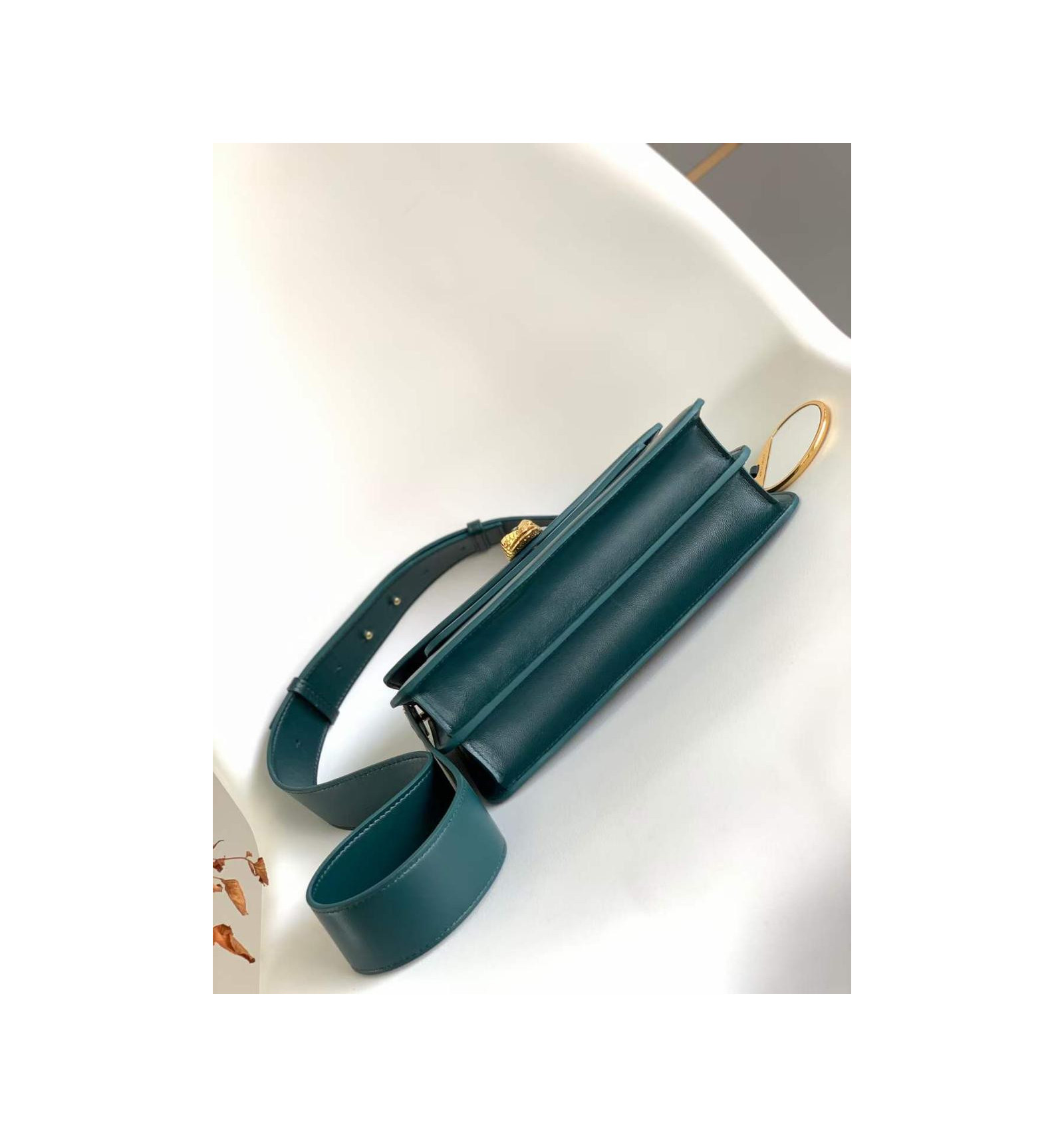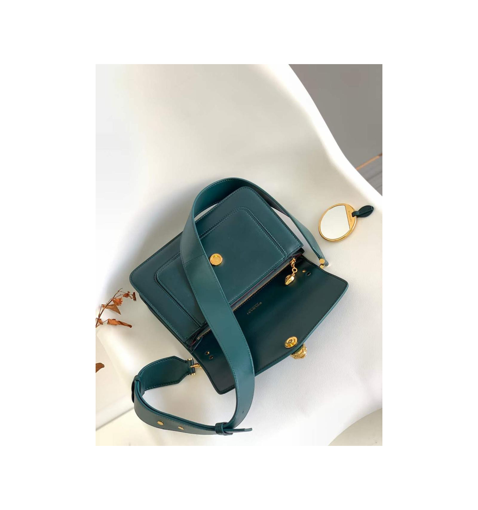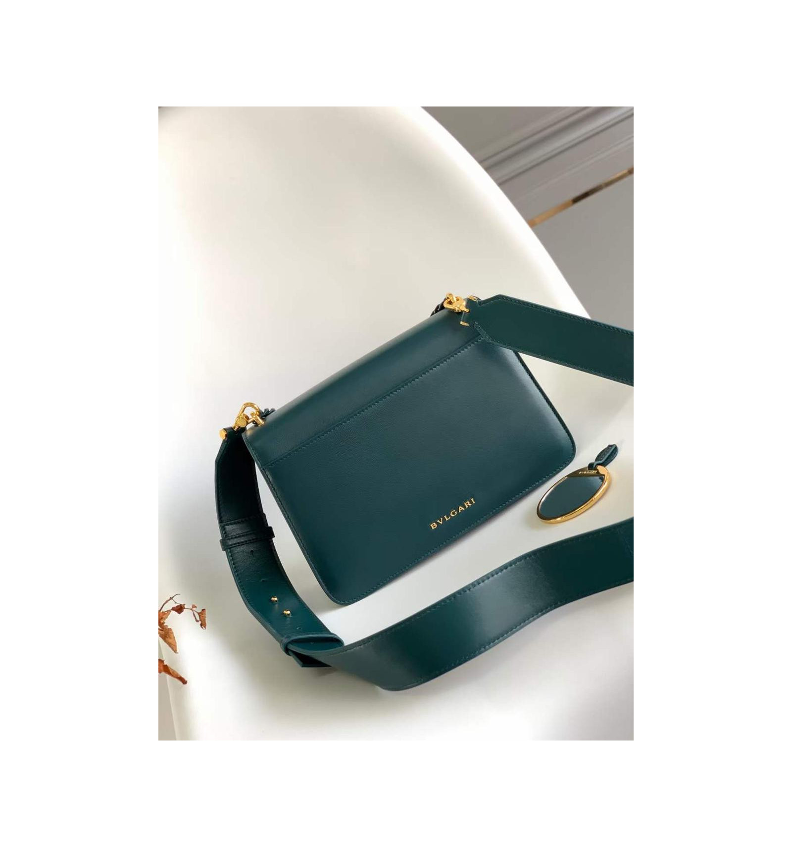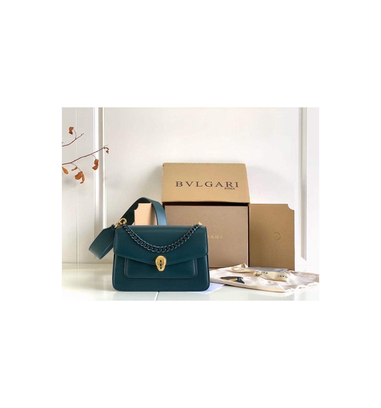 Serpenti Forever miniature bag with charm in azalea quartz green calf leather with beetroot spinel fuchsia calf leather interior. Captivating snakehead press stud closure in light gold-plated brass, embellished with green and white agate enamel scales and black enamel eyes.
