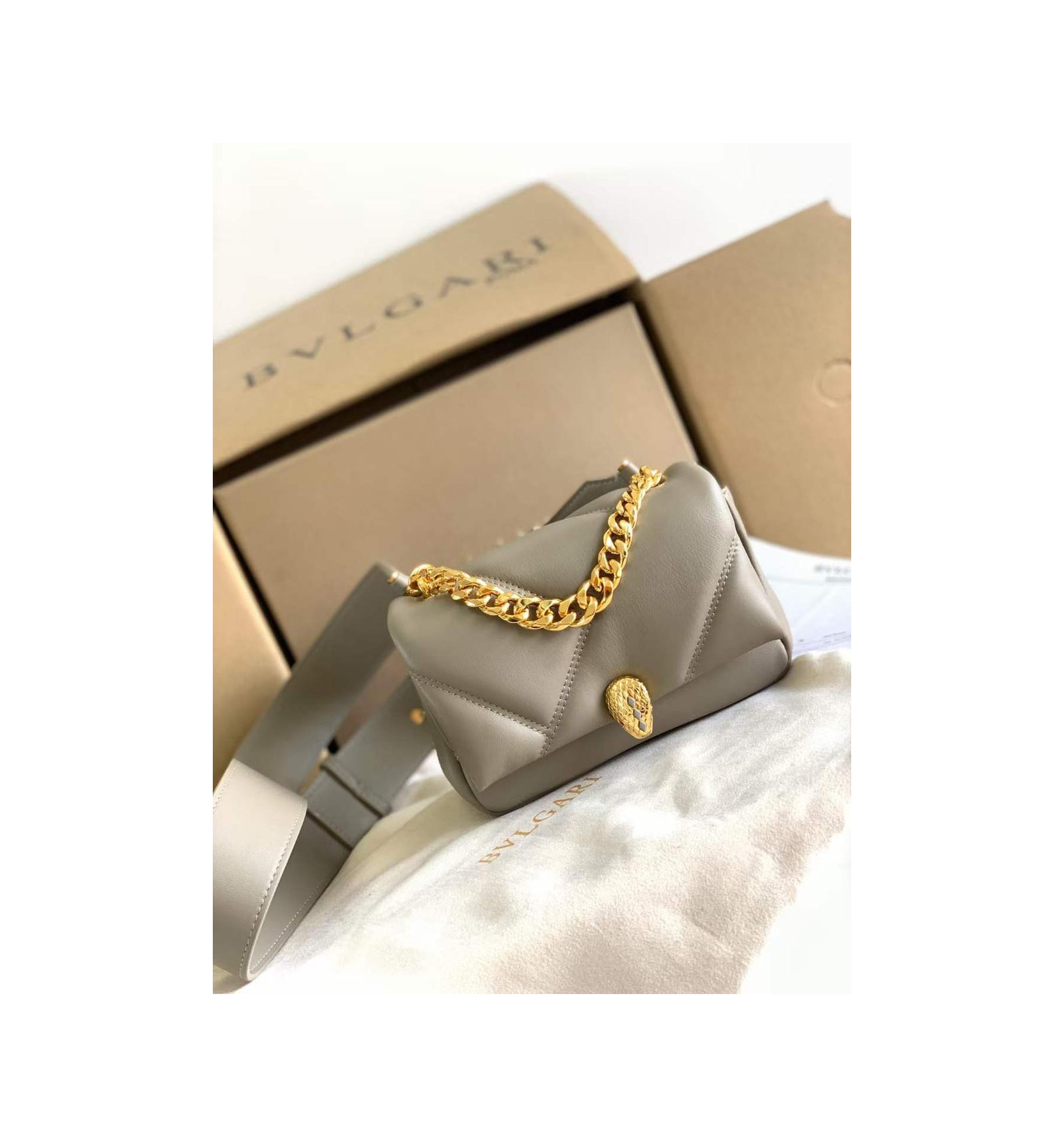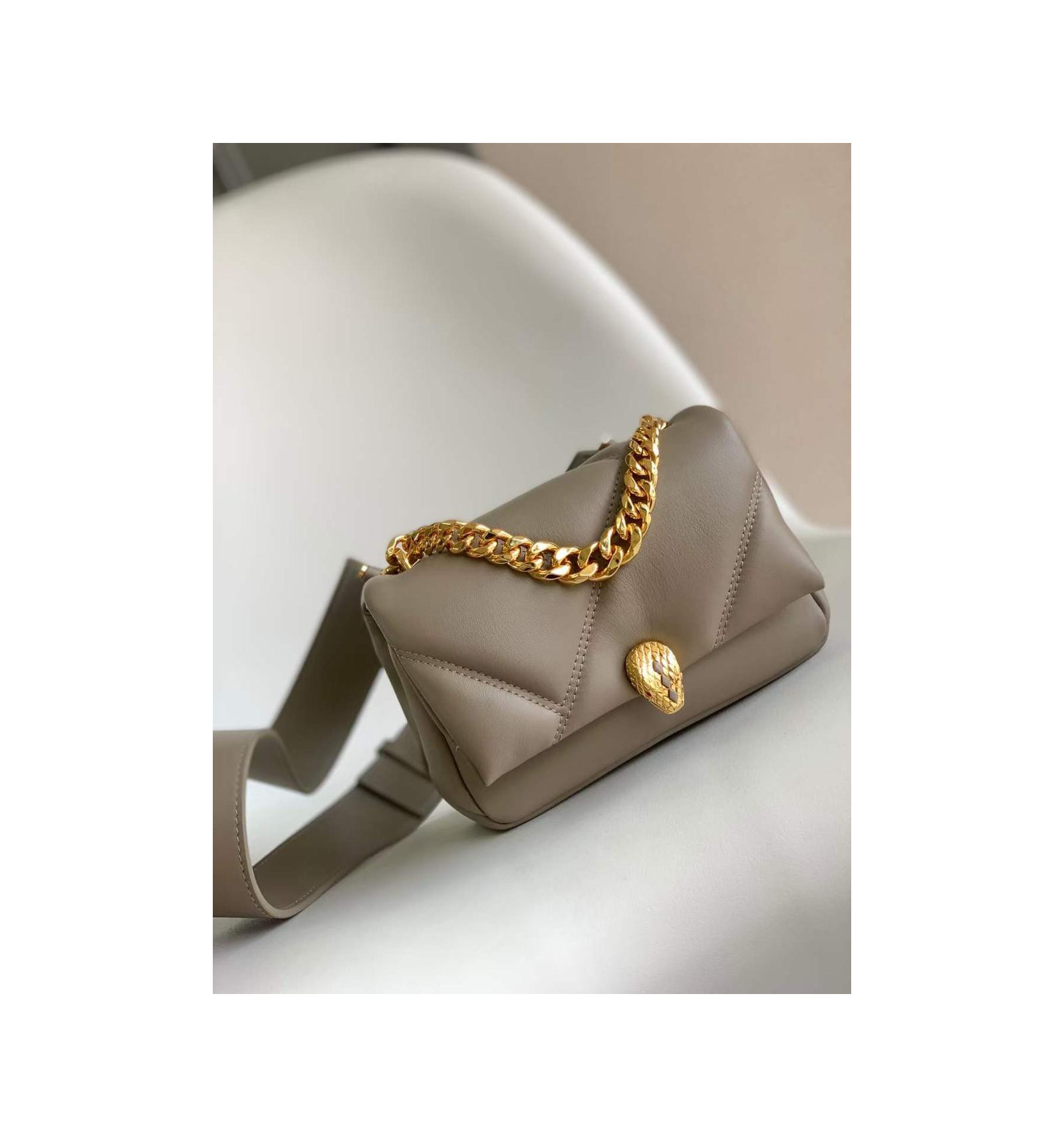 "Serpenti Cabochon" small maxi chain crossbody bag, The geometric maxi matelassé pattern, inspired by the sinuous surface of cabochon-cut gemstones, adds texture to this rich leather bag. This model is adorned with the Serpenti head closure finished with onyx scales and enamel eyes. The Serpenti collection is inspired by the snake’s ability to endlessly change its skin.