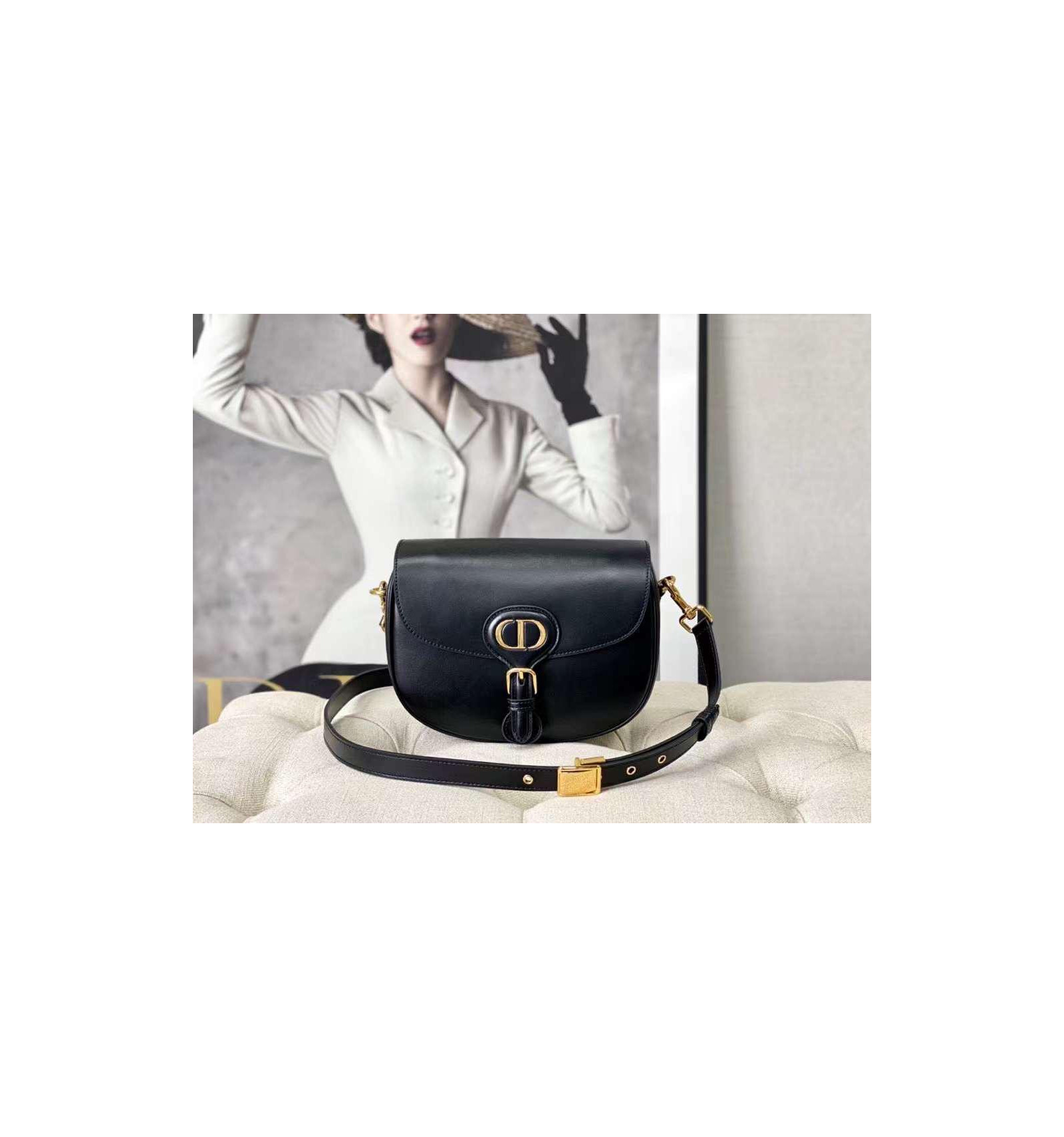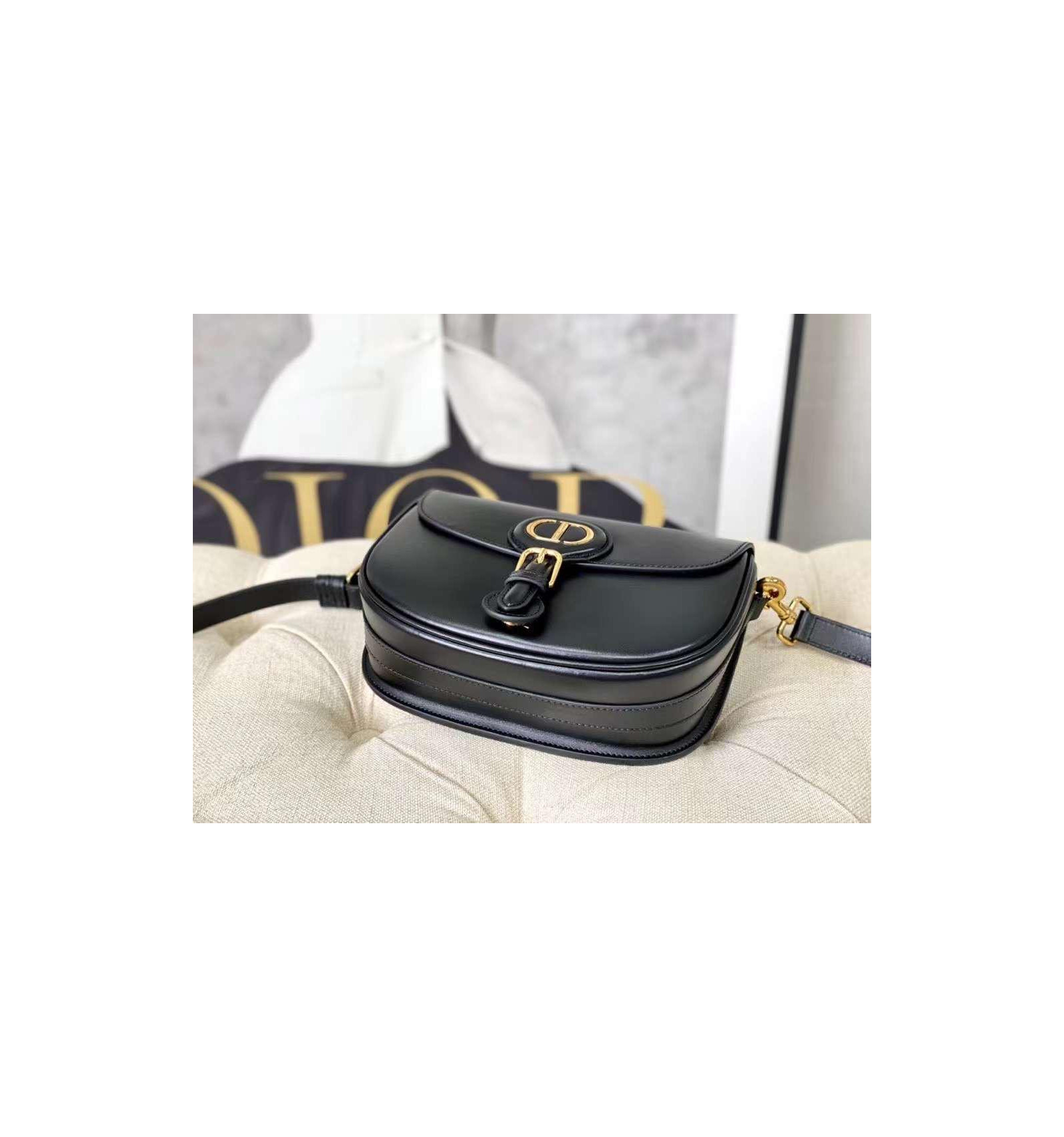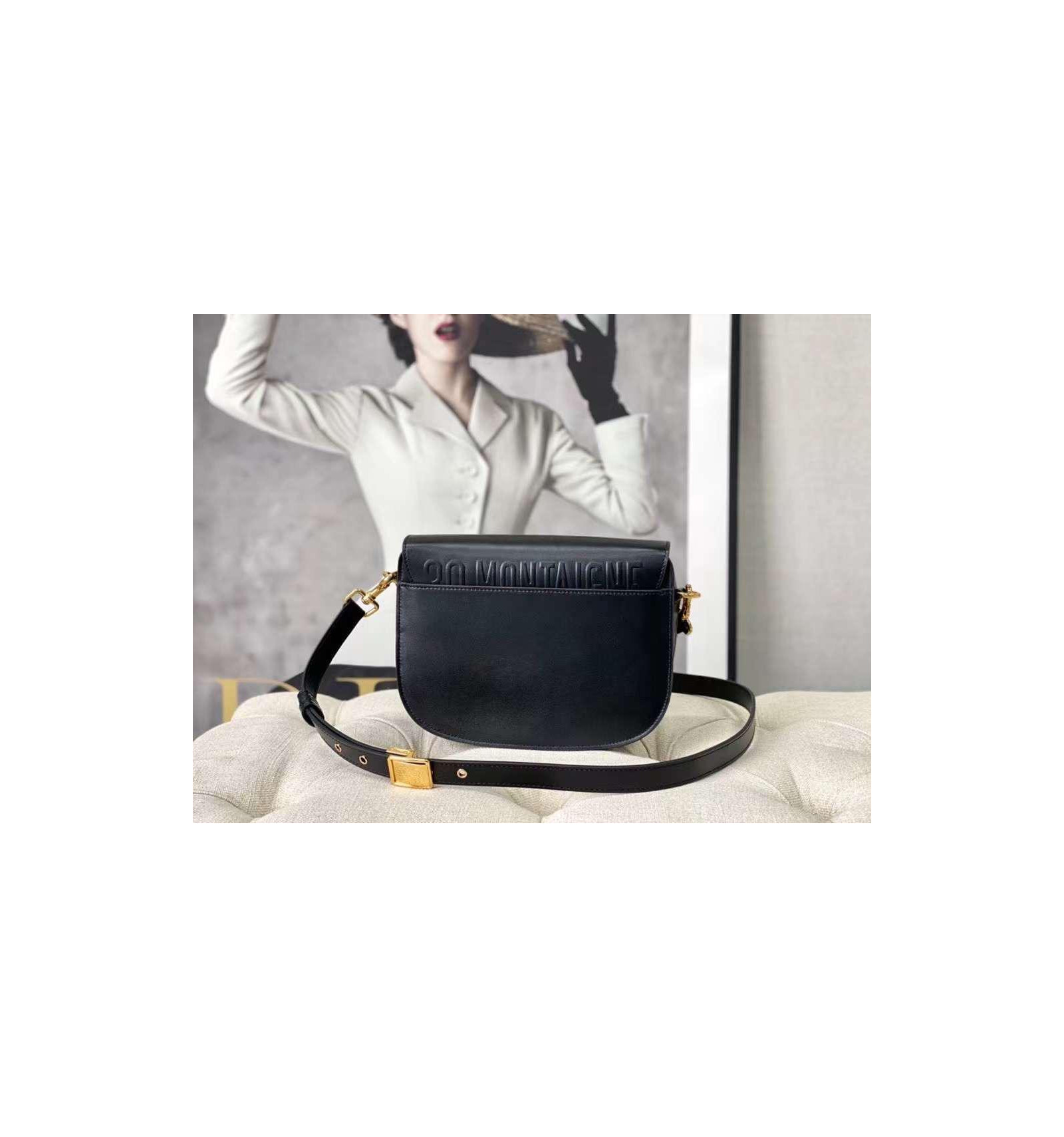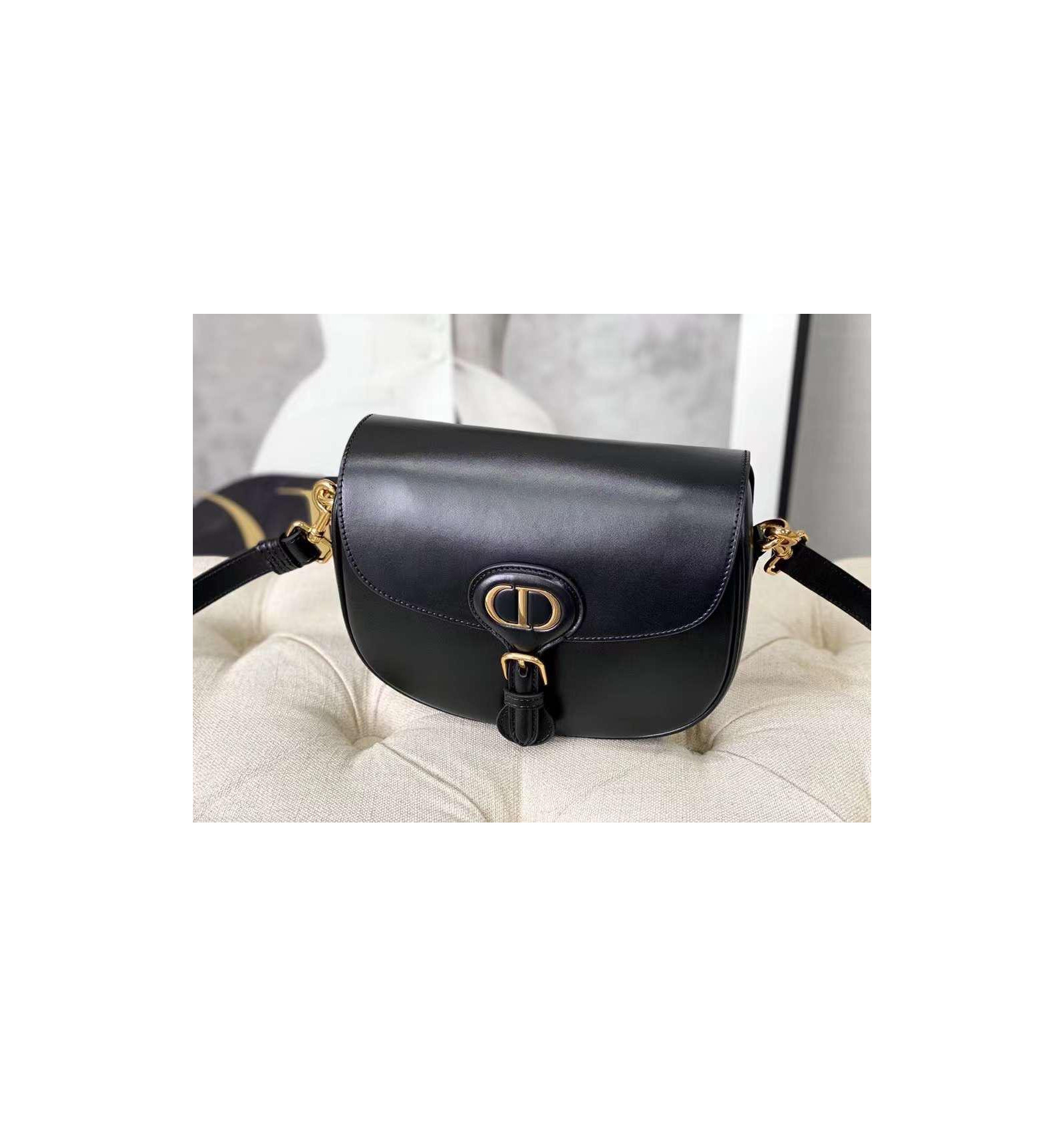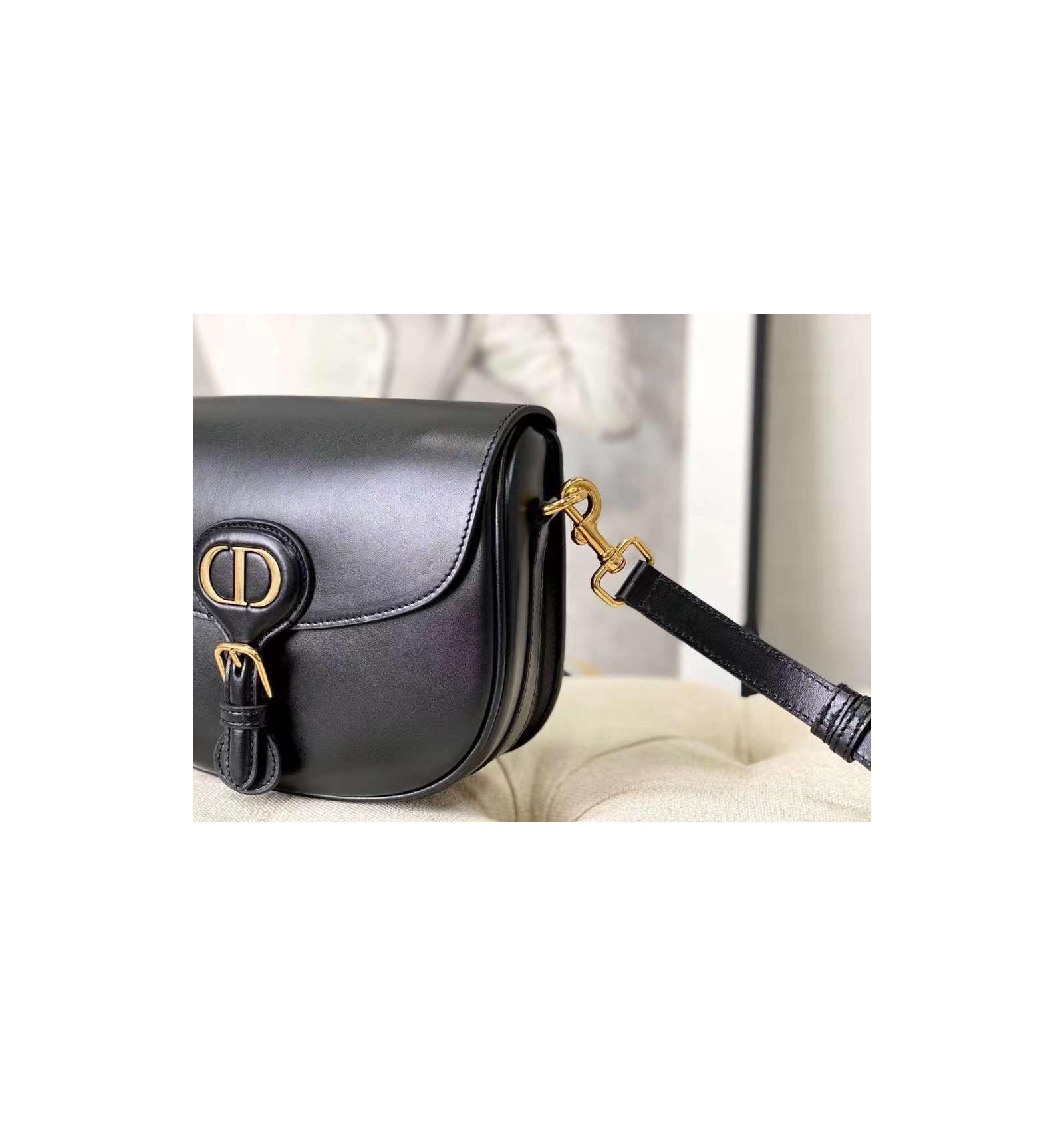 Black Bag smooth calfskin leather with black leather shoulder strap