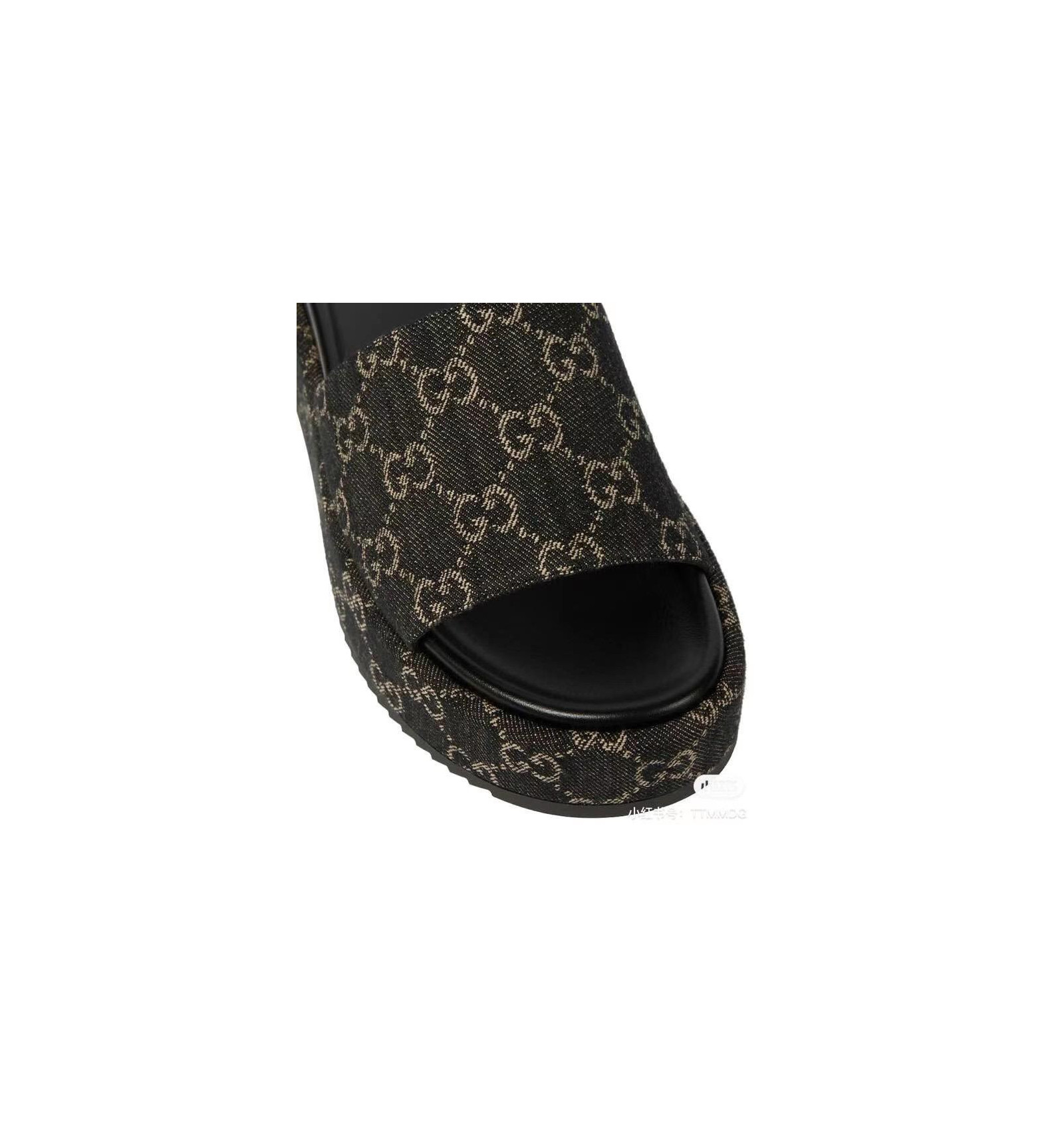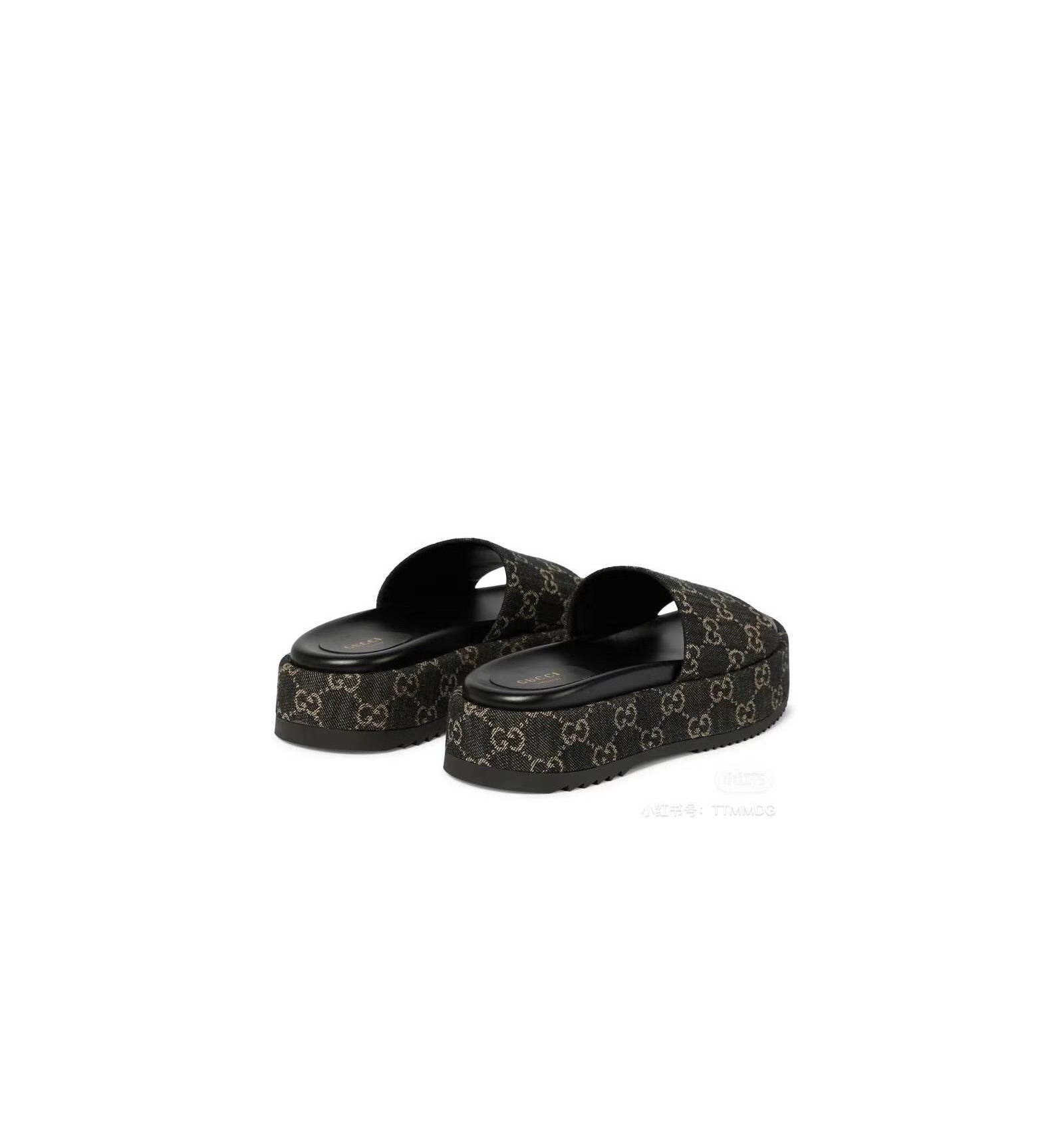 The House's archival monogram canvas fabric is reimagined as a men's slide sandal with the GG motif in a maxi size and trimmed with brown leather. The molded footbed is completed with a rubber lug sole.