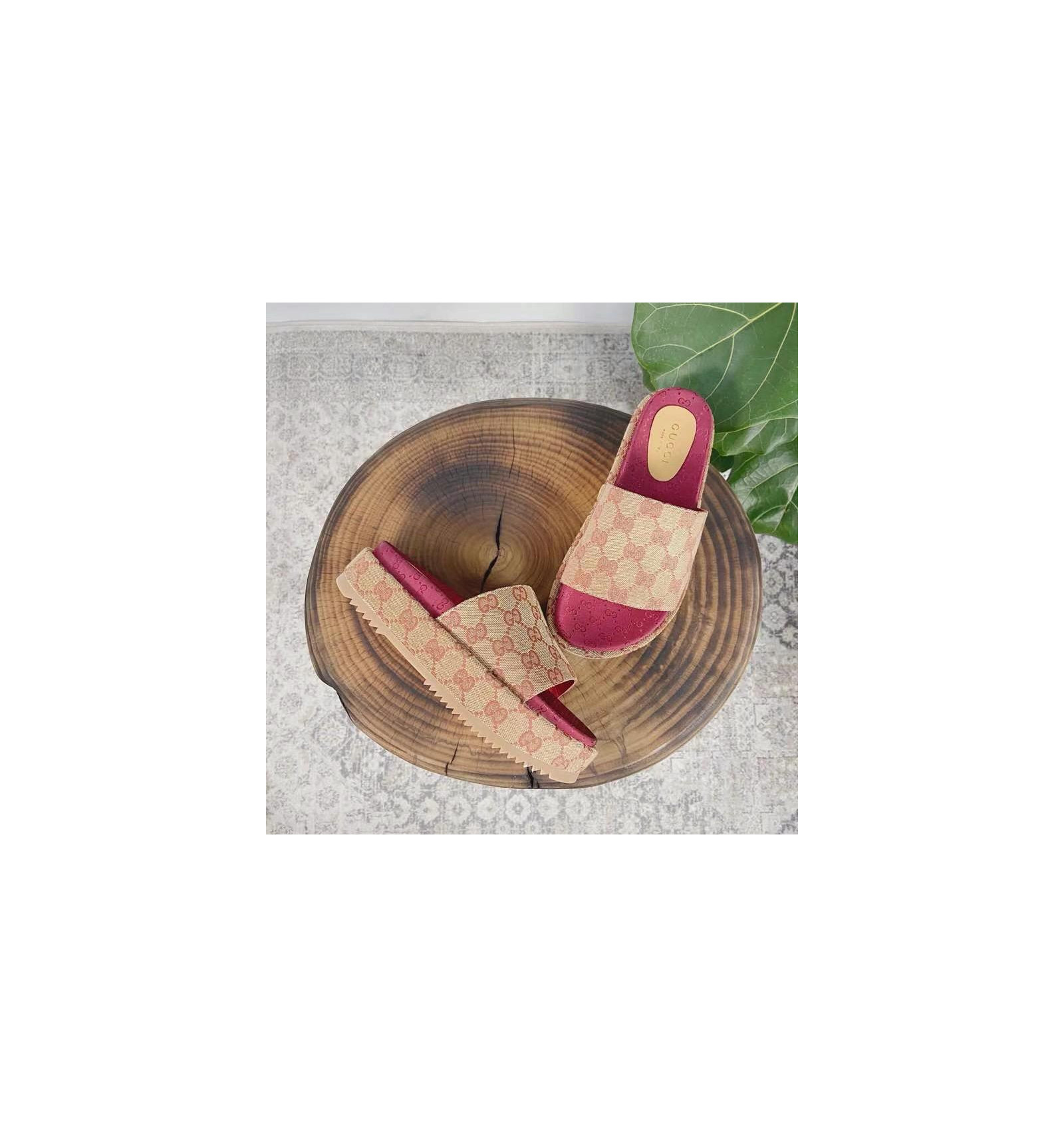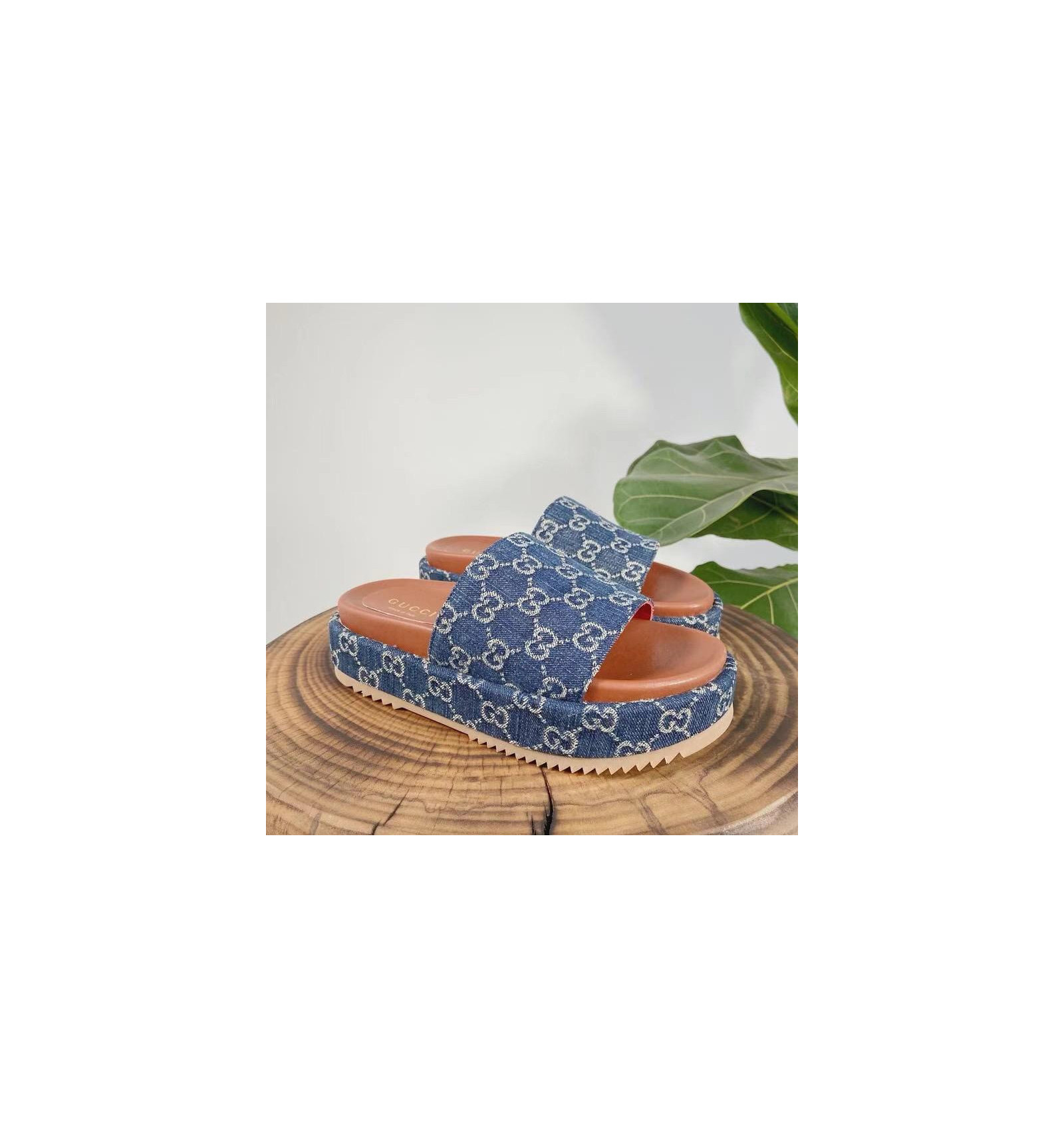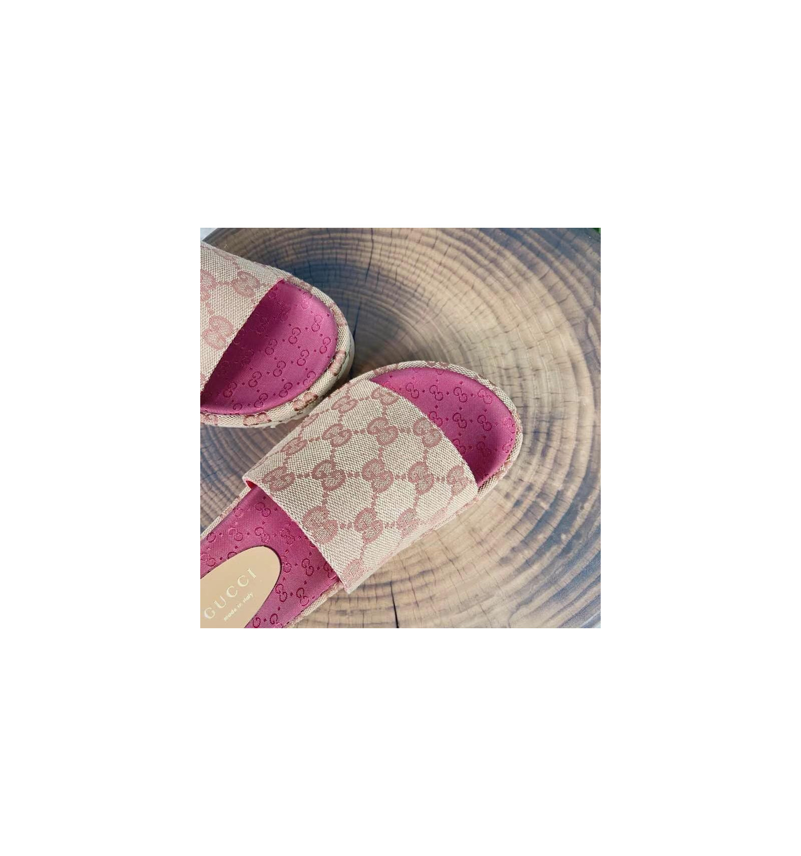The House's archival monogram canvas fabric is reimagined as a men's slide sandal with the GG motif in a maxi size and trimmed with brown leather. The molded footbed is completed with a rubber lug sole.
