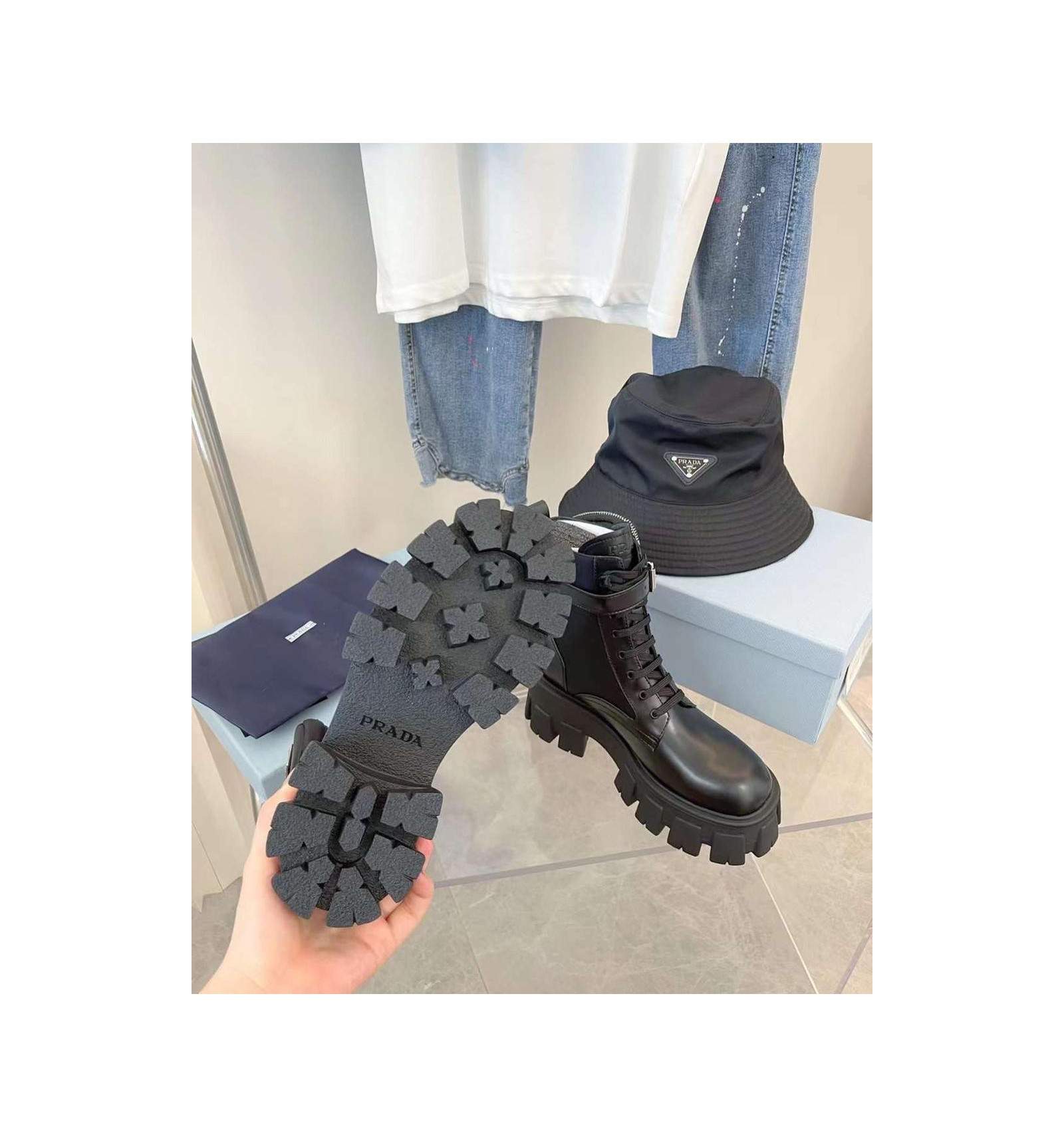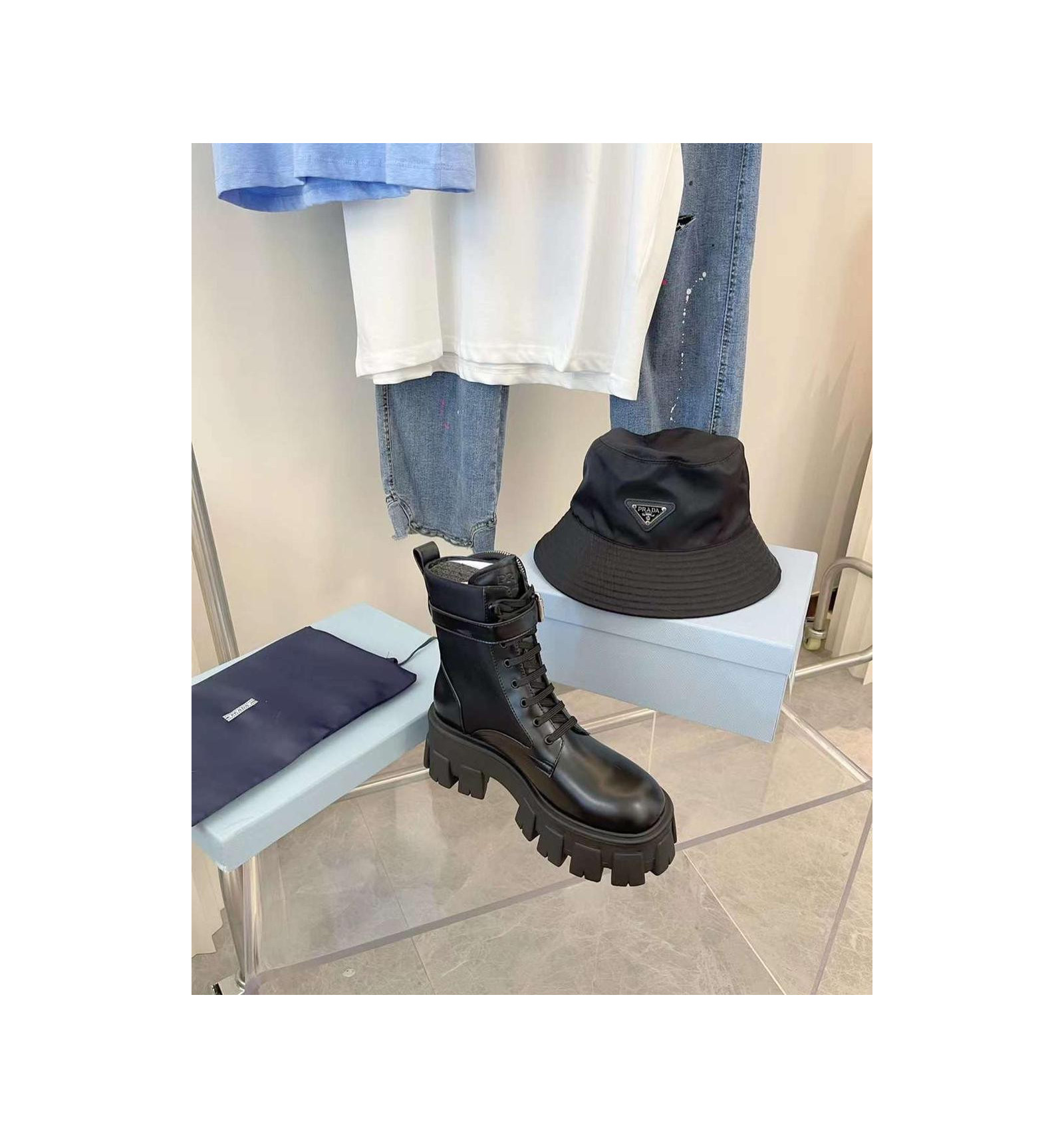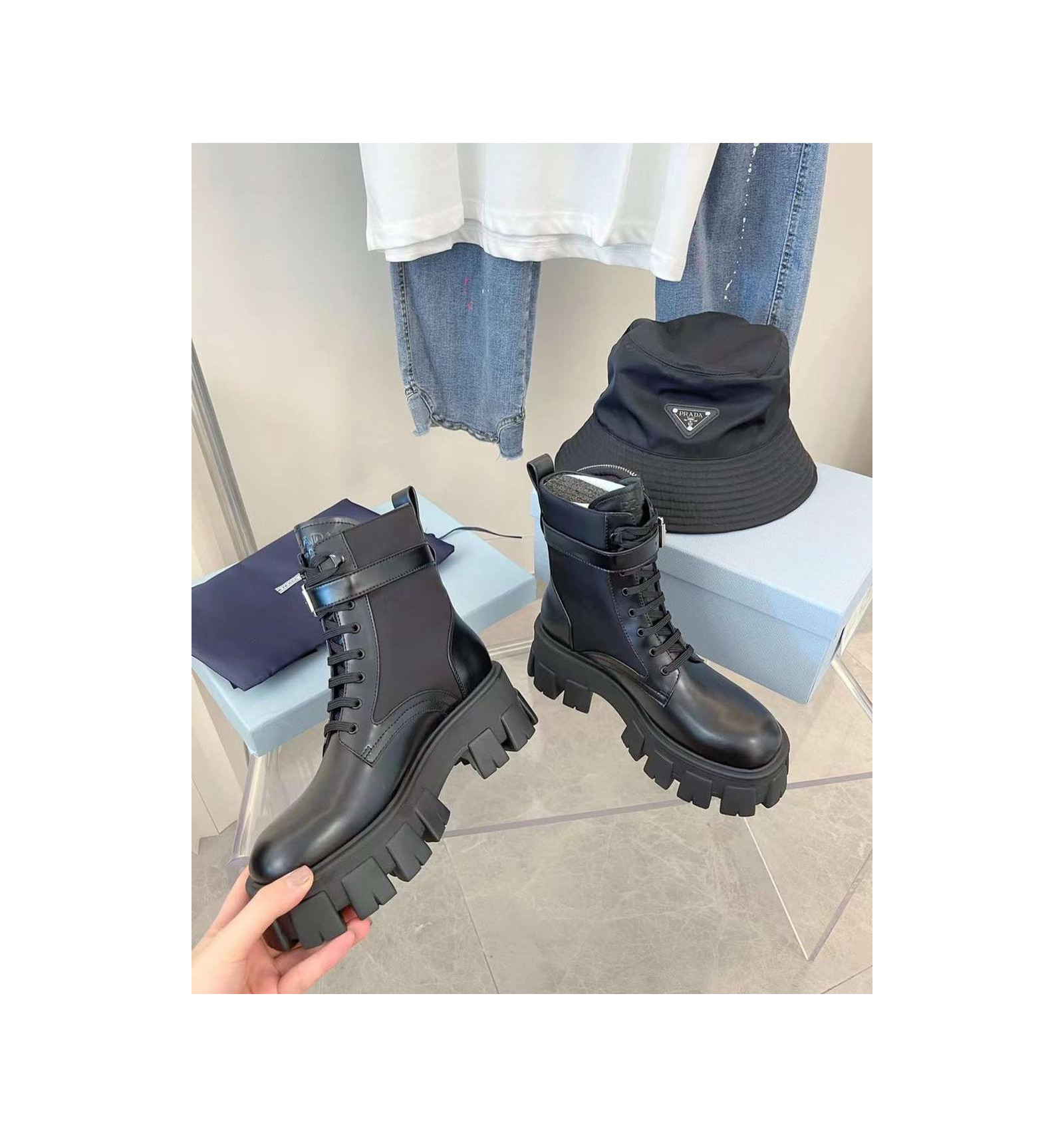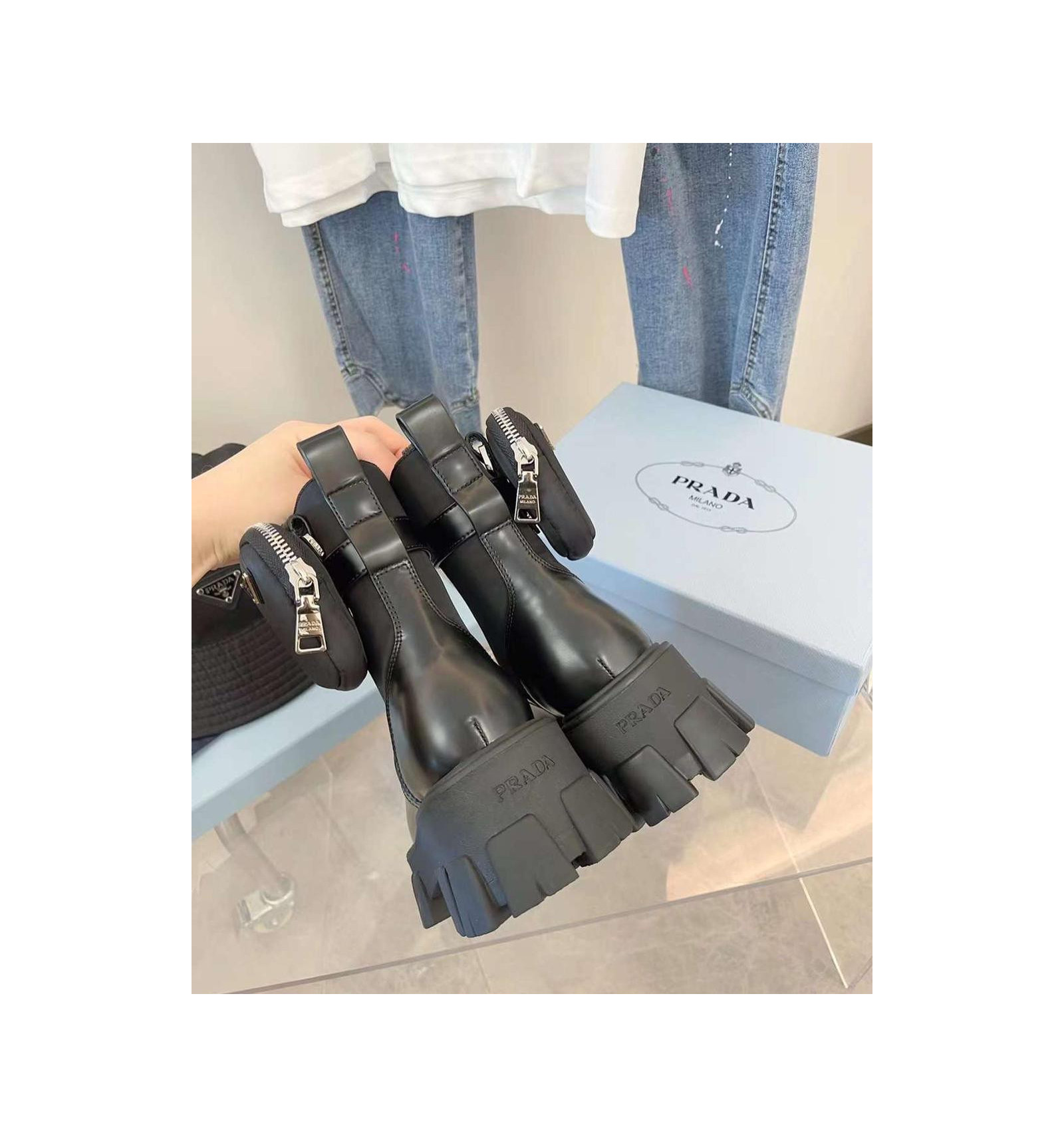 These brushed leather and nylon boots are decorated with a versatile pouch that recalls a multi-pocket design.
