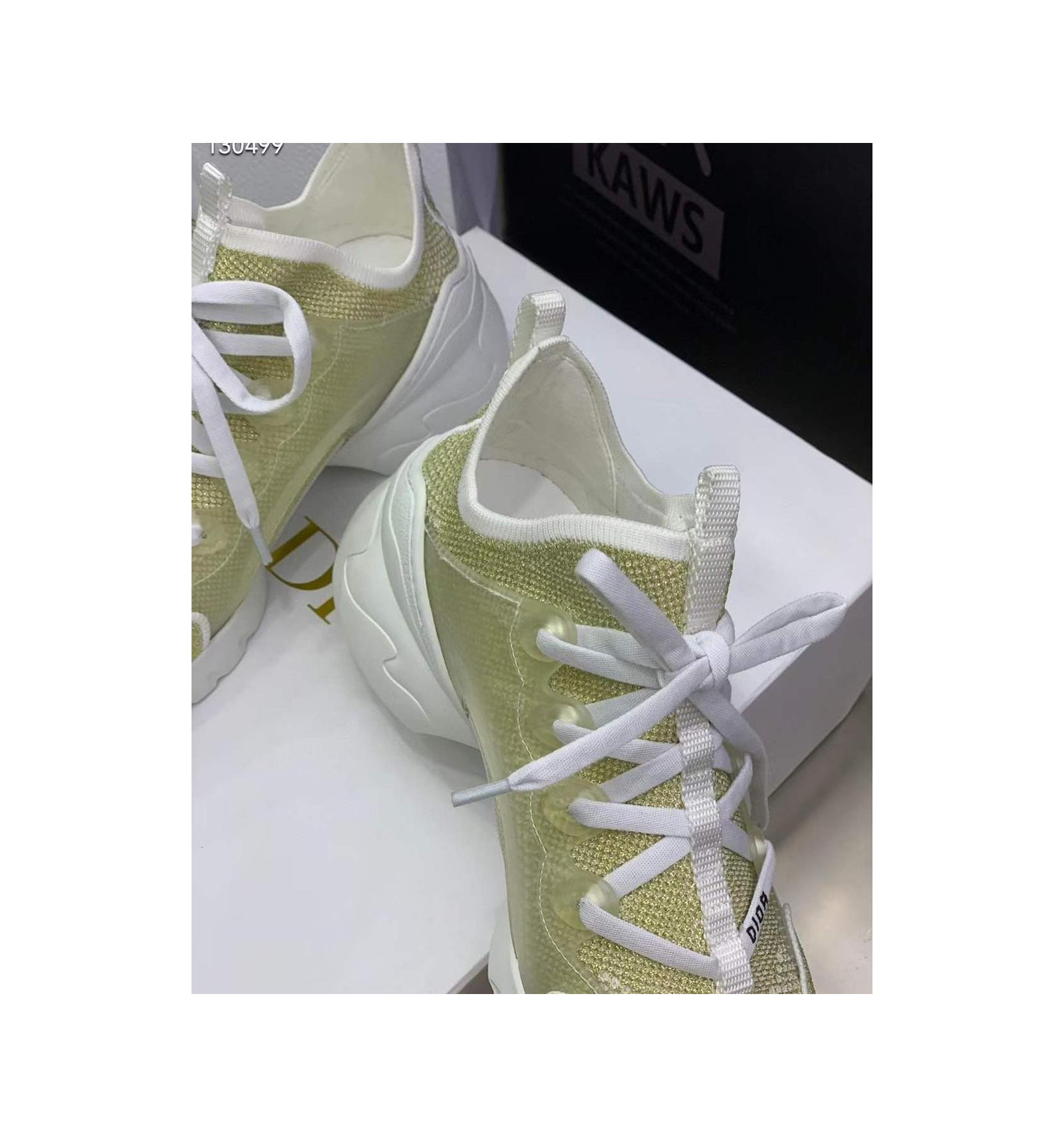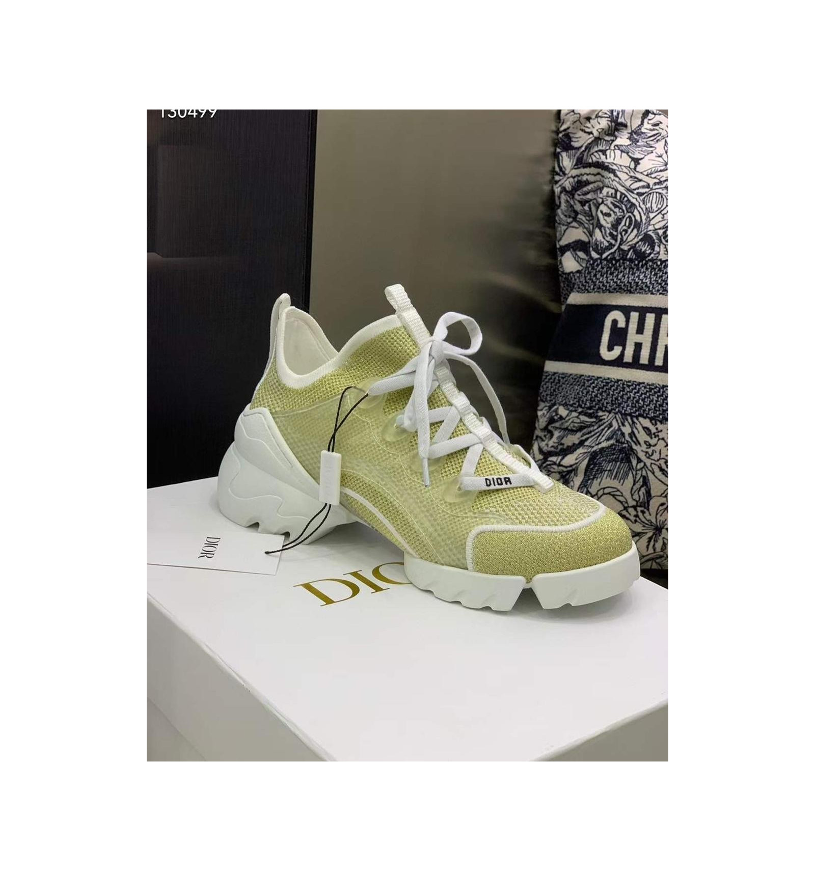 A hallmark House design, the D-Connect sneaker showcases the 'L'Union Fait la Force' motto inspired by the ateliers' jute bags, reaffirming the participative dimension so dear to Maria Grazia Chiuri. The black technical fabric style features a thick sole, round toe and rubber detailing with light green leather inserts. The various materials with the signature give a very modern look to the sneaker, which can be paired with other Union creations from the collection.